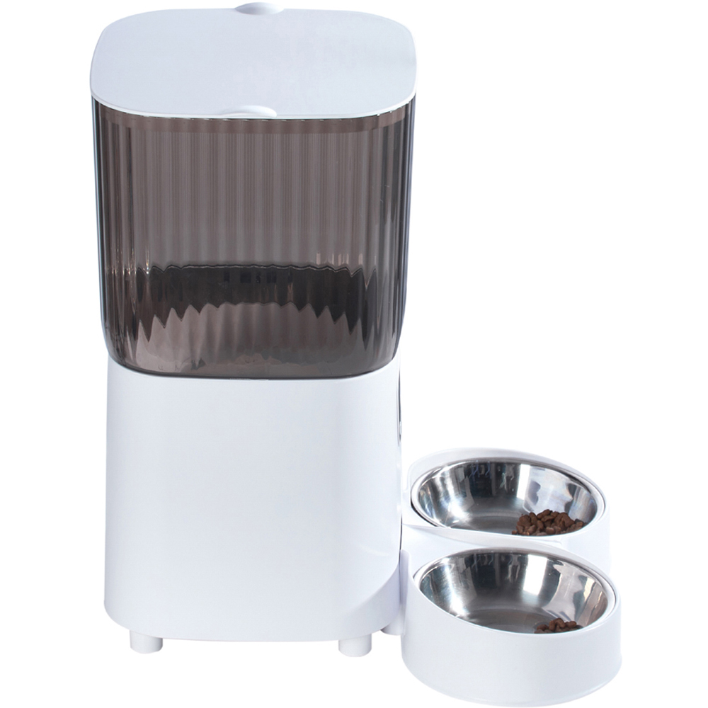 This automatic pet feeder is perfect for busy pet owners and fussy eaters. Equipped with a semi-transparent 5L food container, it allows easy monitoring of food levels. The airtight lid and desiccant box keep the food fresh and dry. It not only offers customisable meal times and portions but is also equipped with an HD camera for real-time feeding monitoring and voice interaction with your pet. The jam-free system with a wider food outlet ensures smooth and uninterrupted food dispensing.