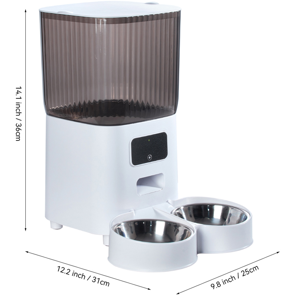This automatic pet feeder is perfect for busy pet owners and fussy eaters. Equipped with a semi-transparent 5L food container, it allows easy monitoring of food levels. The airtight lid and desiccant box keep the food fresh and dry. You can easily control the feeder on your phone to manage daily feeding schedules and track feedback information. The jam-free system with a wider food outlet ensures smooth and uninterrupted food dispensing.
