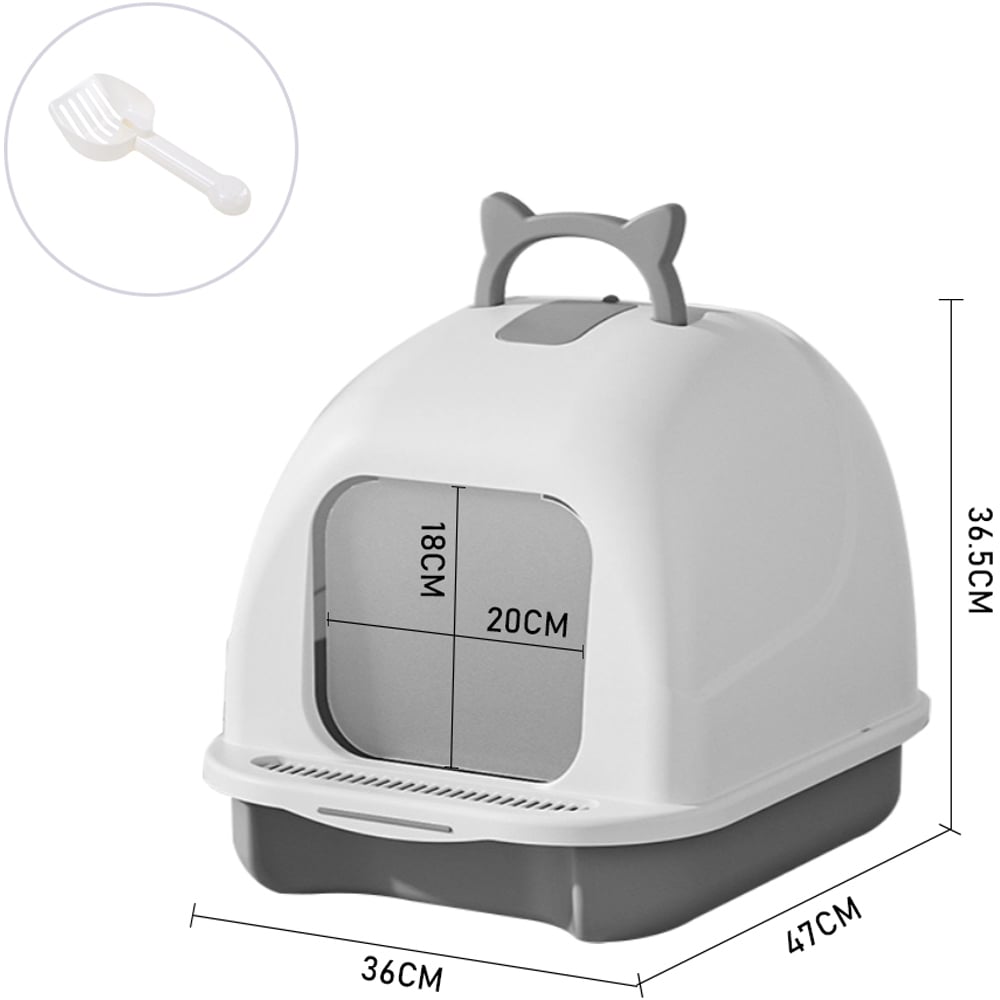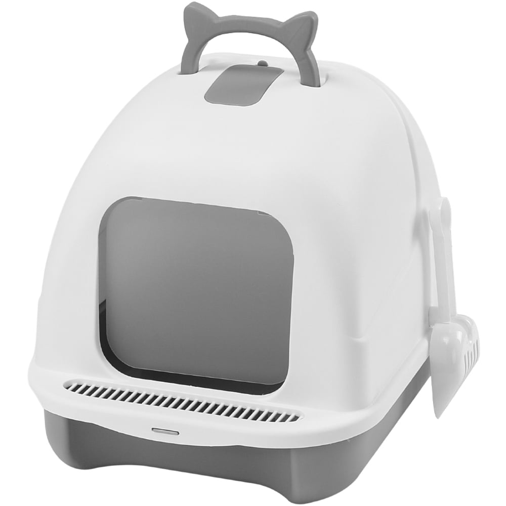 H&O Direct Enclosed White Cat Litter Box with Handle and Scoop Image