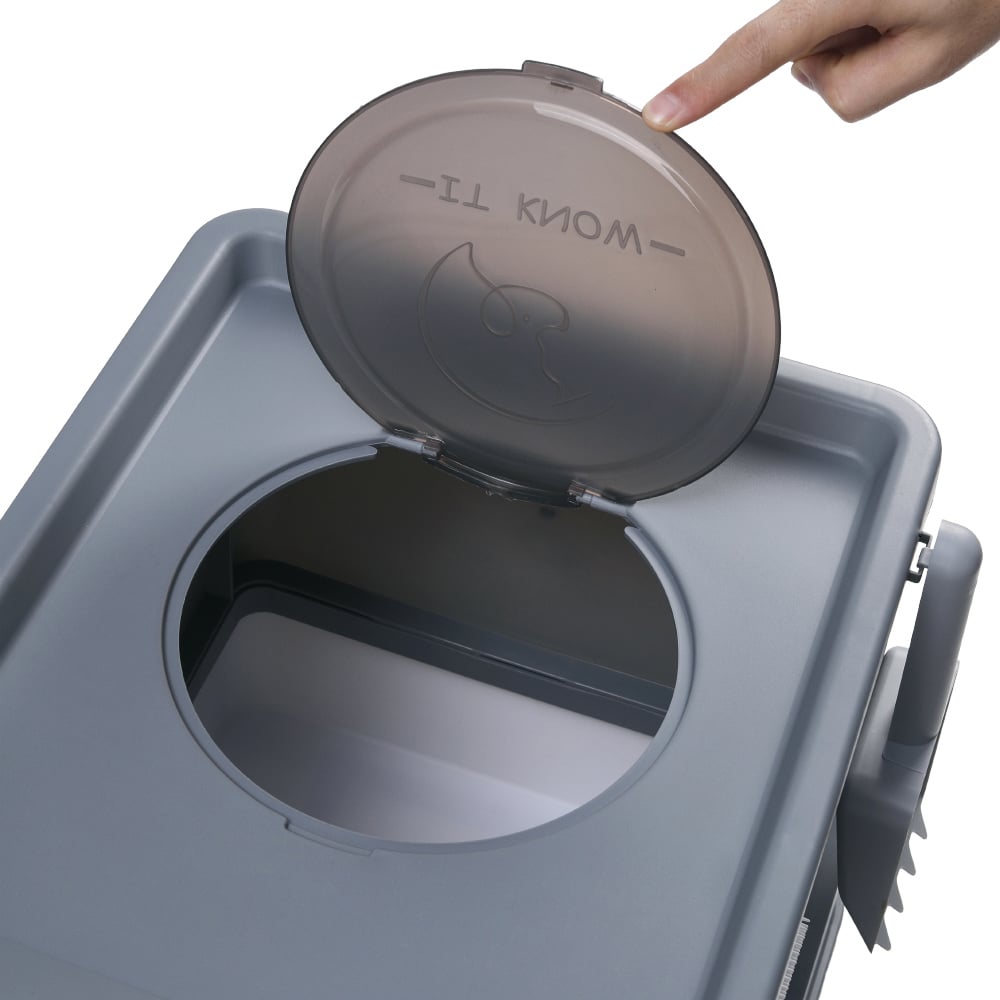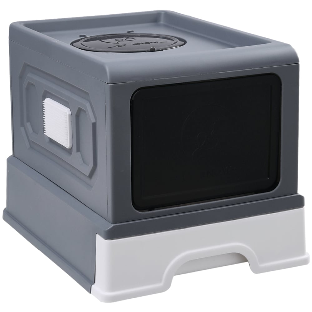 Treat your cat to a cleaner, more private space with this enclosed litter box! It traps odours, prevents spills, and gives your cat room to move comfortably. The front-entry, top-exit design helps cut down on litter tracking, keeping floors cleaner. Plus, the pull-out drawer makes scooping and changing litter quick and hassle-free. Practical, tidy, and cat-approved!
