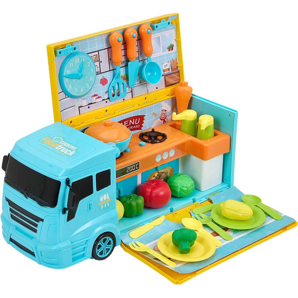 Set off on a cooking adventure with this brilliant 2-in-1 kitchen truck toy. Blending kitchen fun with a cool truck design offers plenty of ways to play. Packed with pots, pans, utensils and pretend food, it sparks hours of imagination. The expandable kitchen area features a stove with glowing lights and cheerful music, capturing the feel of a busy food truck. With realistic touches like a clock and menu board, little one will love stepping into the role. It’s a great way for them to learn about cooking, telling time and building social skills.