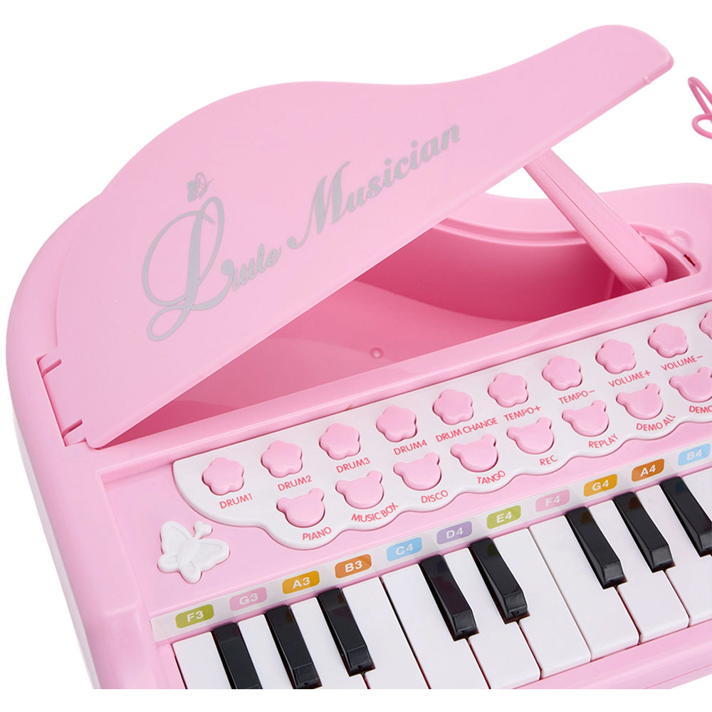 Perfect for toddlers just starting out, this electronic piano is designed with 24 sensitive keys. It comes with 22 demo songs, four popular instrument sounds and eight percussion options, giving plenty of ways for kids to learn and be creative. Three different tonal ranges let little ones play beautiful melodies with ease. An adjustable microphone means they can sing along and express themselves. With flashing lights, smart sleep mode, and adjustable volume and tempo, plus an easy-to-use control panel, it’s a fun and engaging musical companion for both children and parents.