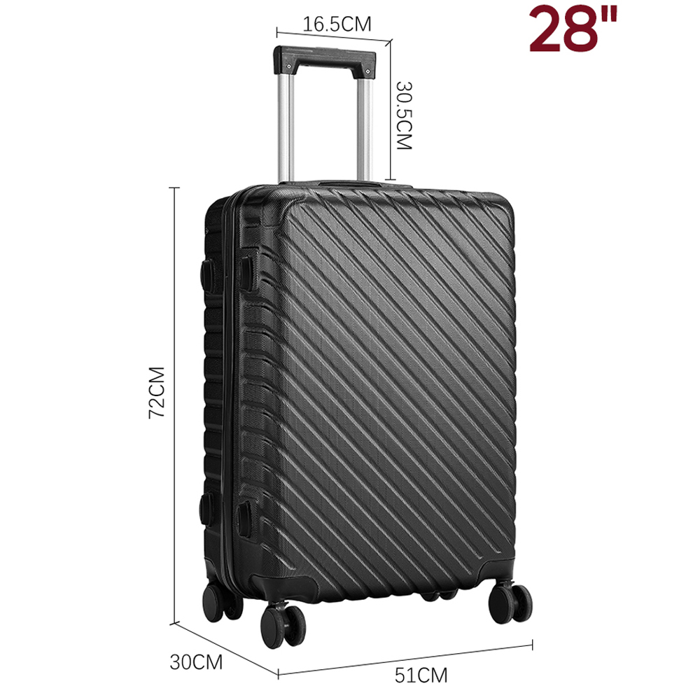 Made from lightweight yet impact-resistant materials, this suitcase offers superior protection while remaining easy to carry. The four 360-degree spinner wheels ensure smooth and silent mobility, while the inside with elastic cross straps and zippered closure keeps your belongings organised. With a built-in safety lock, you can travel with peace of mind. Whether for business or leisure, this suitcase combines practicality with a modern look. Size: 28 inch.