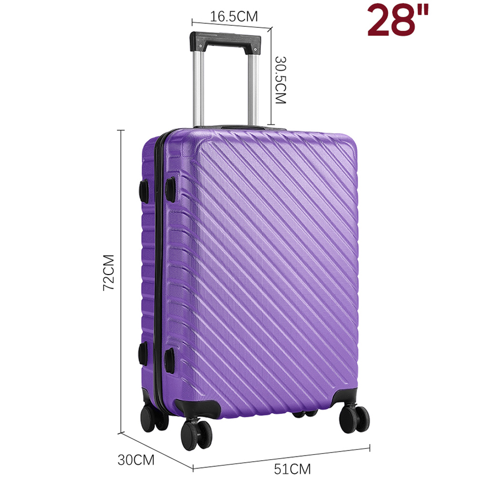 Made from lightweight yet impact-resistant materials, this suitcase offers superior protection while remaining easy to carry. The four 360-degree spinner wheels ensure smooth and silent mobility, while the inside with elastic cross straps and zippered closure keeps your belongings organised. With a built-in safety lock, you can travel with peace of mind. Whether for business or leisure, this suitcase combines practicality with a modern look. Size: 28 inch.