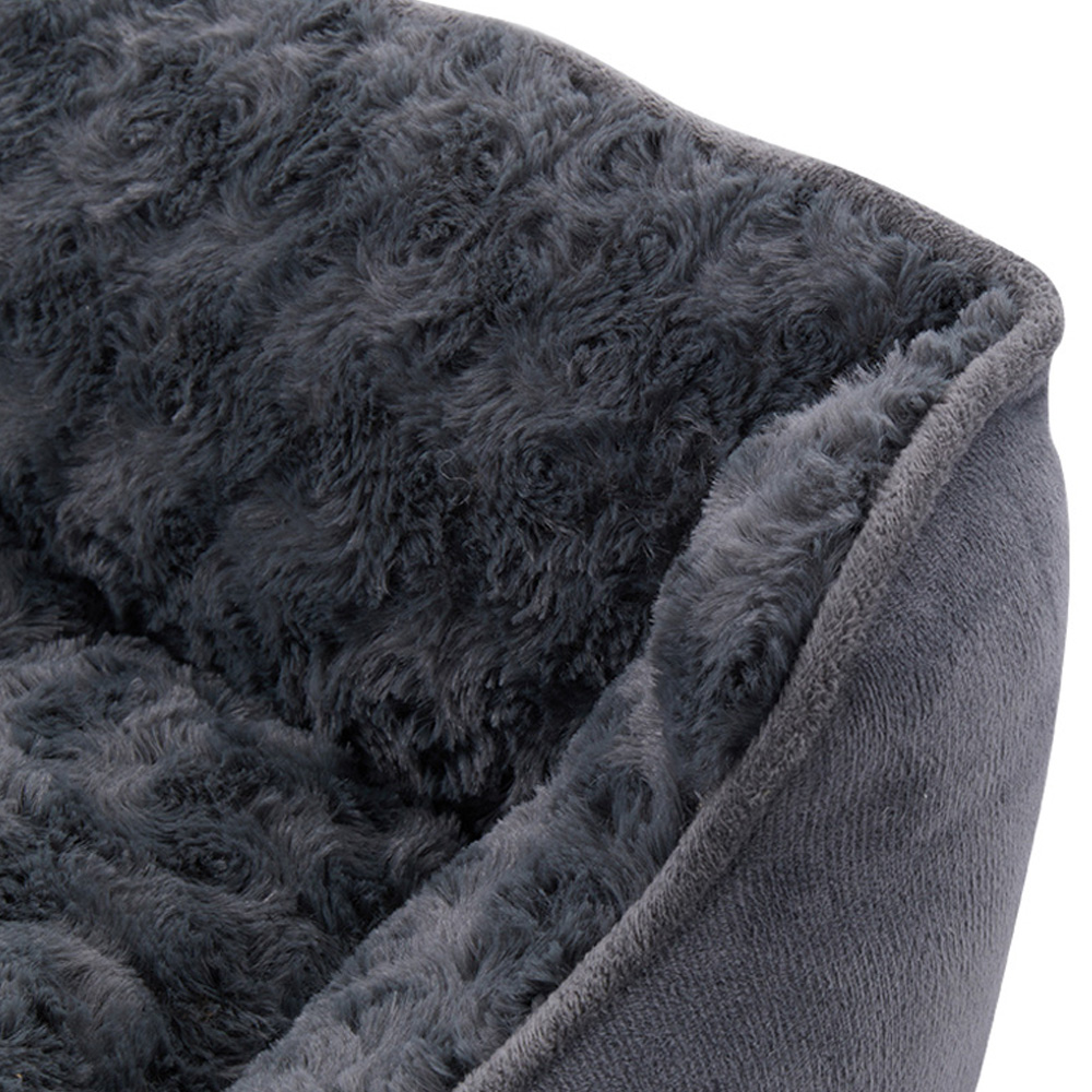 Keep your pet warm and cosy with this soft bed. Made with rose-swirl plush and pet-friendly fabric, it retains heat for extra comfort during chilly days. The raised sides and rectangular shape offer a sense of security while providing cushioned support for your pet. Filled with thick PP cotton and shredded foam, the base keeps your furry friend off the cold floors. Whether it’s for daytime lounging or a restful night’s sleep, this bed will be the favourite spot for your pet.
