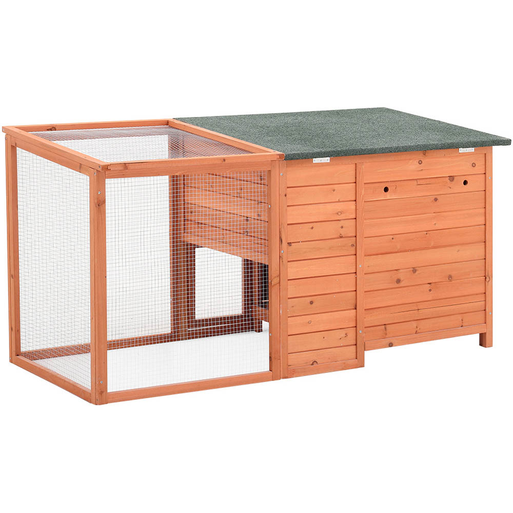 Offer your chickens a cosy, safe home with this sturdy chicken coop. The slanted roof keeps them dry by letting rainwater run off easily, while the iron wire mesh ensures plenty of fresh air to keep your flock healthy. Made from high-quality fir wood, this coop is built strong enough to last through many seasons, providing comfort and protection for your chickens year-round.
