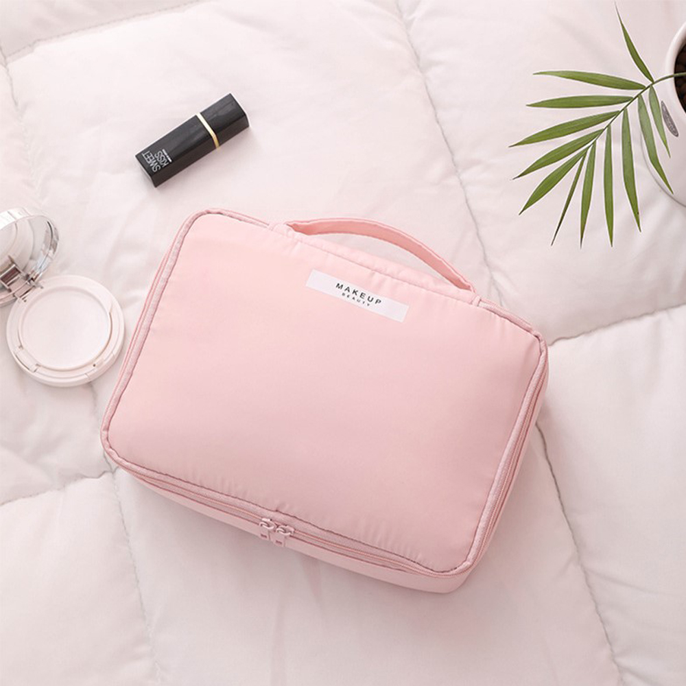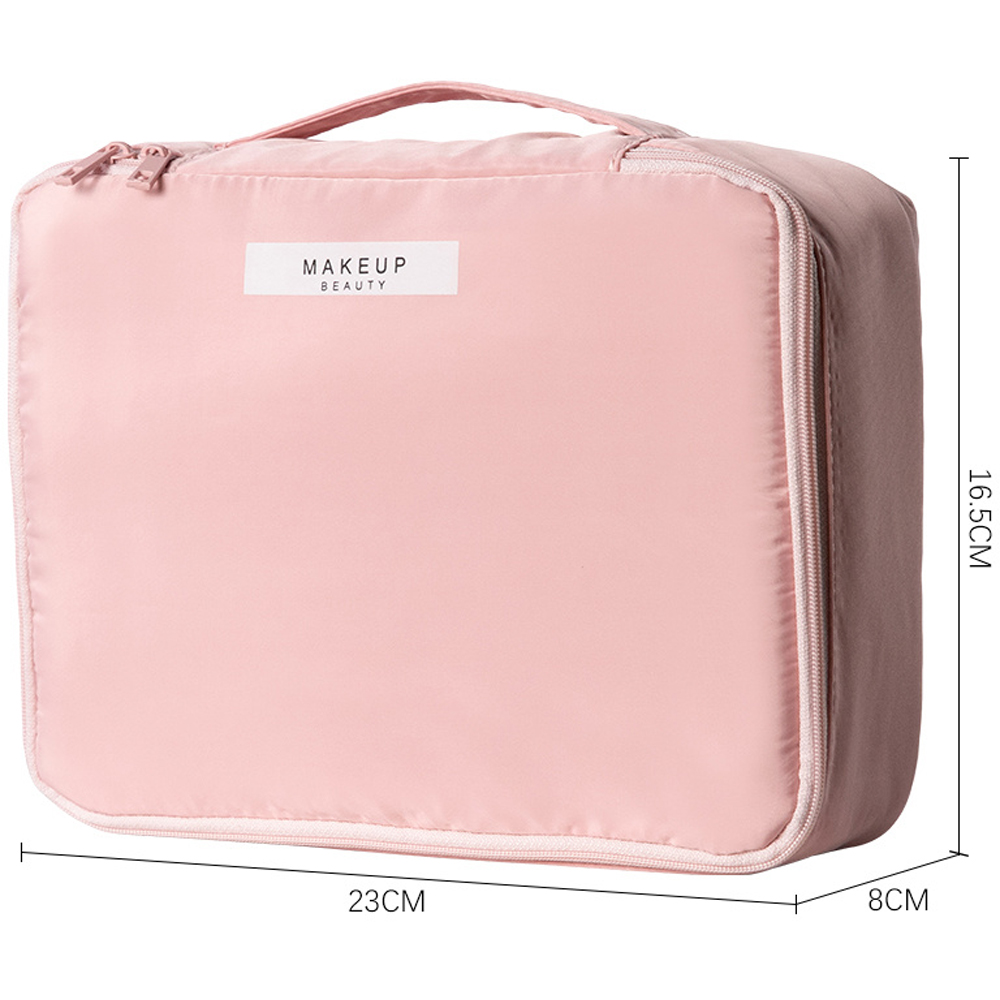 Brighten up your day with this candy-coloured makeup bag, combining style and practicality. With plenty of space for all your skincare and cosmetics—even the bigger bottles—it keeps everything organised and easy to find. The upper compartments are perfect for makeup brushes, so they stay separate and don’t get mixed with your other items. Plus, its lightweight design means it’s the ideal travel companion, whether you're heading on holiday or to the gym.