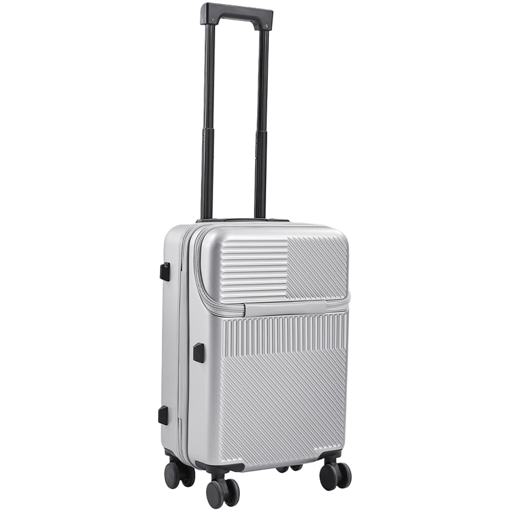 Make your journey easy and stylish with this suitcase. Its modern striped texture pairs perfectly with a comfortable black handle. You’ll find a handy cup holder and side hooks to keep essentials close at hand, while the front zip lets you grab what you need quickly. Inside, multiple compartments keep your belongings neat and easy to find. Rounded corners protect against knocks and scratches, and the rubber handles give a secure, comfortable grip, even when fully packed. It’s a thoughtful blend of style and function to help your travel go smoothly. It comes with USB charging port and TSA lock.