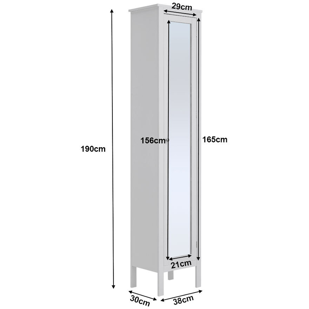 Get organised without sacrificing style with this versatile storage pantry. Featuring multiple adjustable shelves, it offers flexible storage for everything from toiletries to taller items. The full-length mirror isn’t just for checking your outfit—it also helps create the illusion of more space, making any room feel bigger and brighter. Made from durable MDF in a chic white finish, this cabinet is perfect for bathrooms, bedrooms, hallways, or entryways.