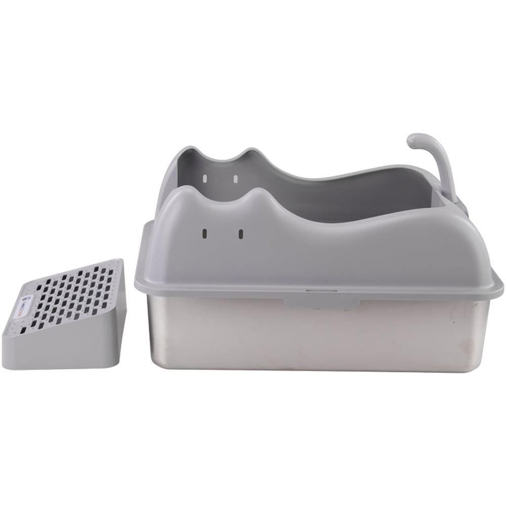 H&O Direct Stainless Steel Cat Litter Box with Filter Pedal Image