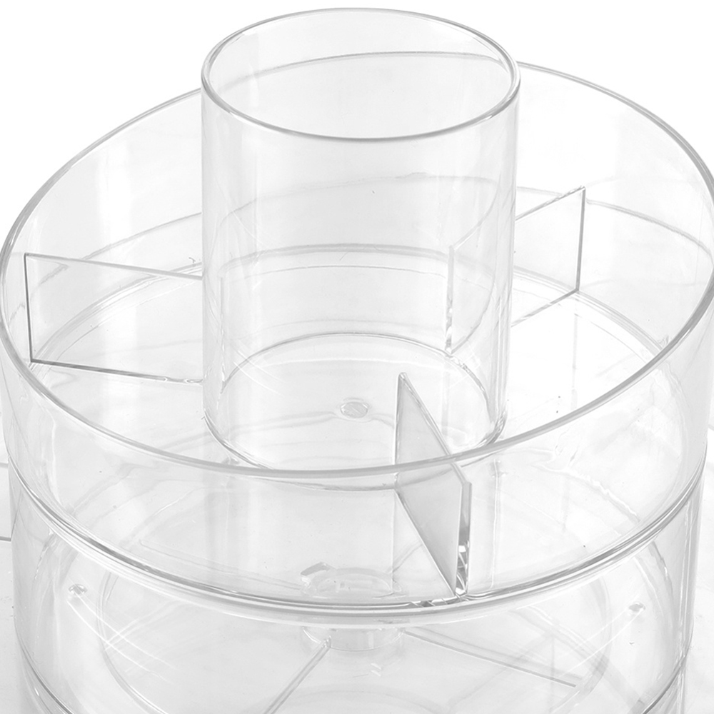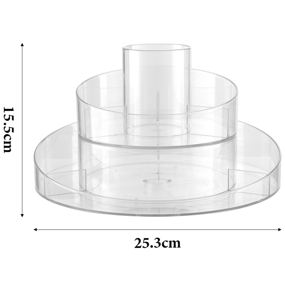 Say goodbye to cluttered makeup bags and drawers with the Cosmetic Storage Carousel. Designed to keep your cosmetics neat and easily accessible, this smart rotating organiser helps you find exactly what you need without the hassle. With a spacious two-layer design, it offers dedicated compartments for lipsticks, foundations, eyeshadow, and skincare products. A special brush holder adds convenience, ensuring all your beauty essentials have their place.