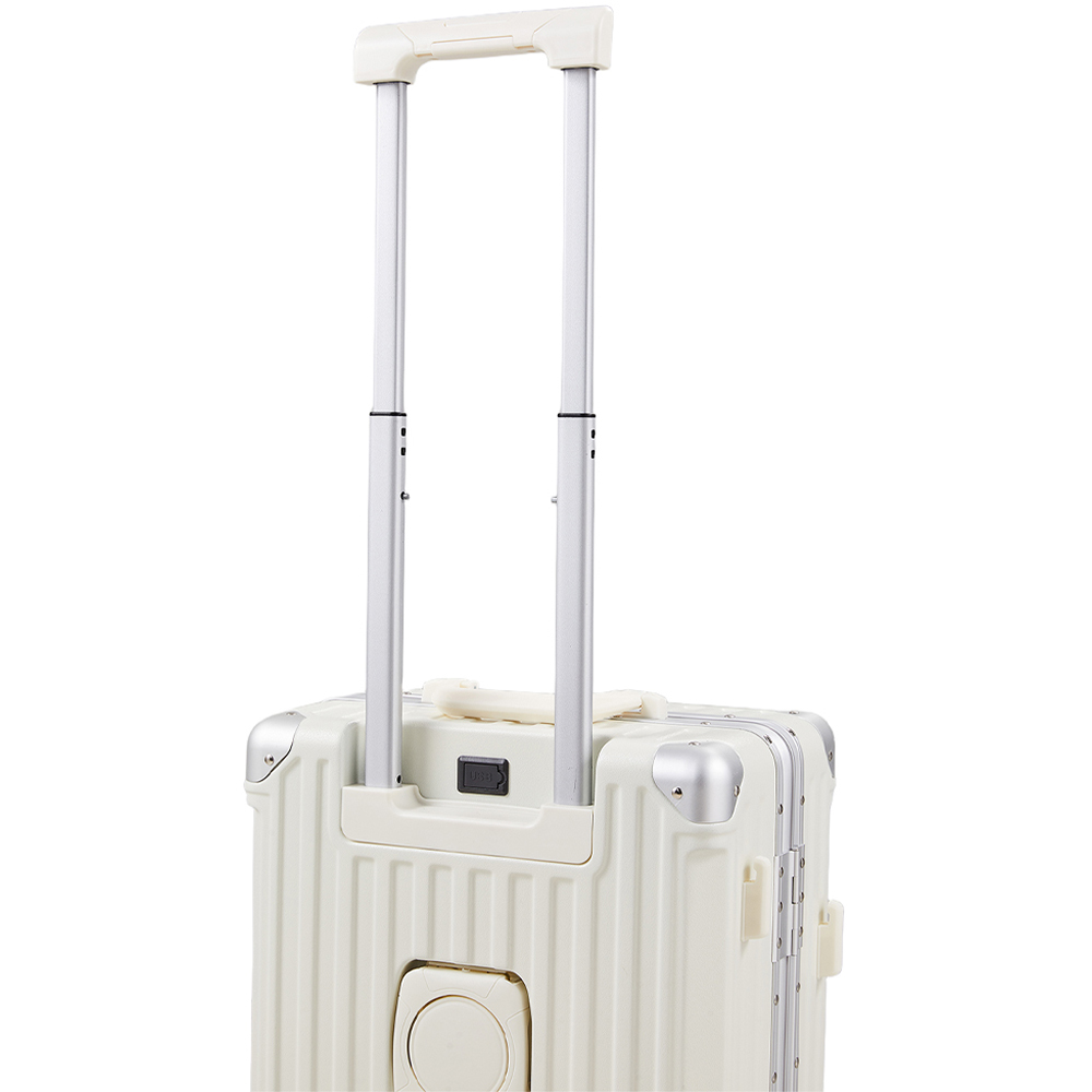 Experience a new level of stylish travel with this innovative suitcase, combining fashion and function. Made from durable ABS and PC with an aluminium frame, it provides reliable protection for your belongings. Multi-directional wheels ensure effortless movement, while the built-in USB port keeps you charged on the go. The extendable metal handle includes a phone holder, and added side hooks and a foldable cup holder enhance convenience, making every journey smoother.