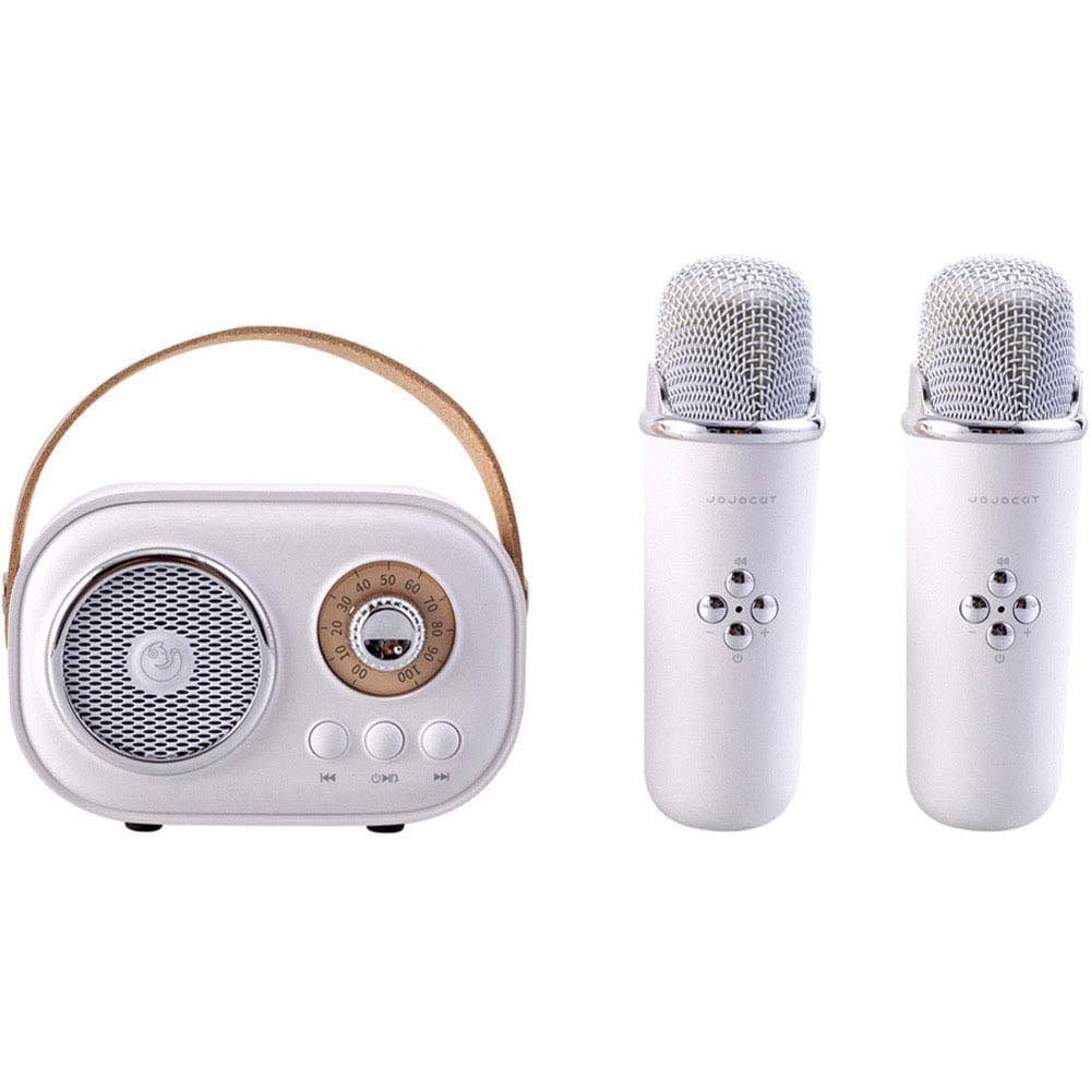 H&O Direct White Mini Portable Bluetooth Karaoke Machine with 2 Wireless Microphone