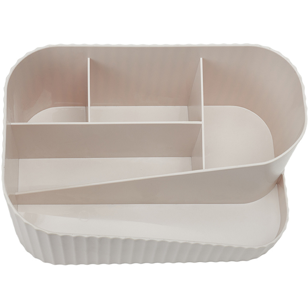 Simplify your daily makeup routine with this sleek desktop organiser, designed to keep your space neat and stylish. With its clean lines and channelled exterior, this organiser adds a chic touch to your desktop or vanity. The open-top design allows for easy access to your essentials, while multiple compartments ensure everything from foundations to brushes and hair accessories stays organised and within reach.