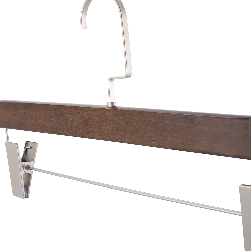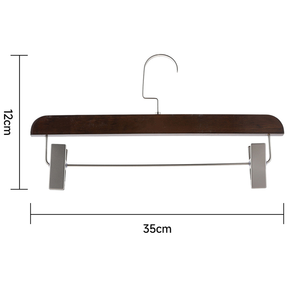 Keep your wardrobe organised and wrinkle-free with this set of 10 premium hangers. Crafted from solid wood, these hangers are built to last and resist deformation. Each hanger features adjustable clips with four powerful springs, ensuring your clothes, from ties to jeans, stay securely in place without leaving marks. The elegant retro colour adds a touch of sophistication to your closet while providing a functional solution for hanging clothes or drying them.