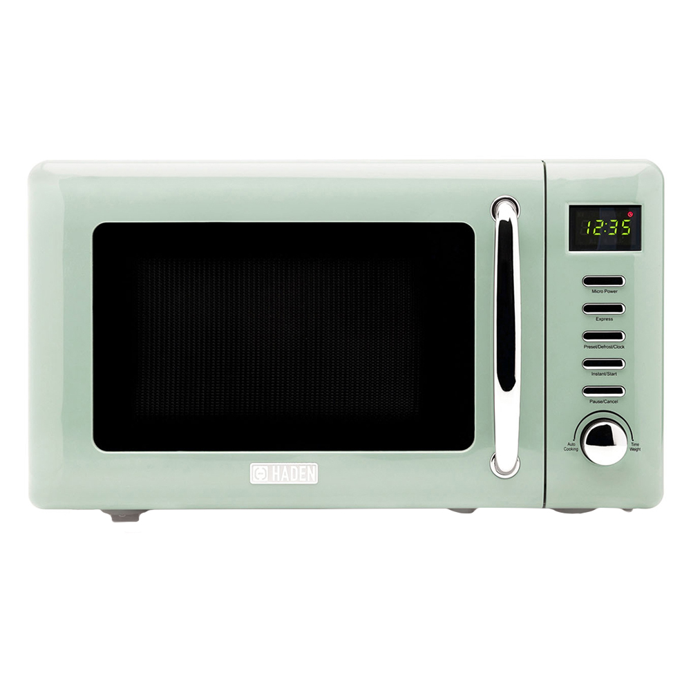 Make a stunning addition to your kitchen with this Haden Sage 20L Microwave. With a stunning 20-litre capacity this microwave is perfect to feed family and friends. It features 800W power, convenient defrost/reheat/cooking functions and digital controls for easy use. Apart from this, it makes a versatile kitchen option with 5 power levels and a 60-minute digital timer. Complete with a sleek and modern design in sage with a chrome knob and door handle to easily complement the decor.