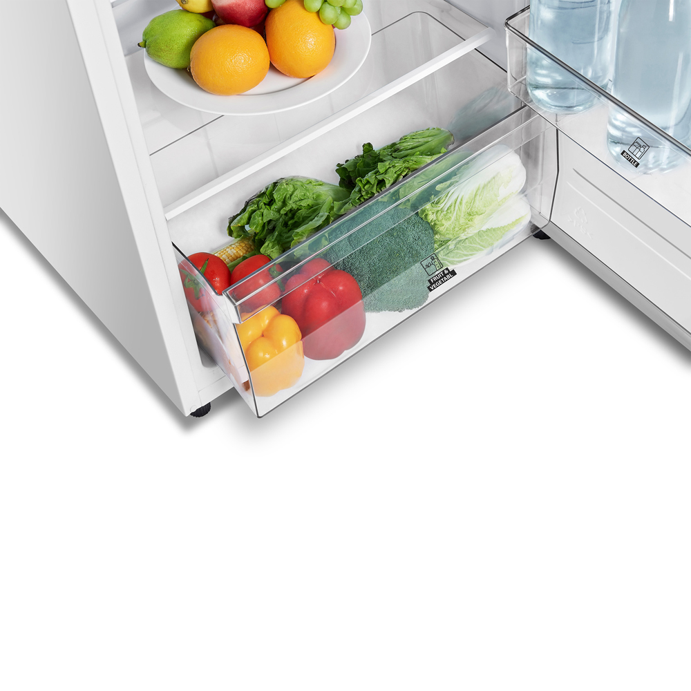 • Equipped with 4 movable glass shelf and crisper drawer