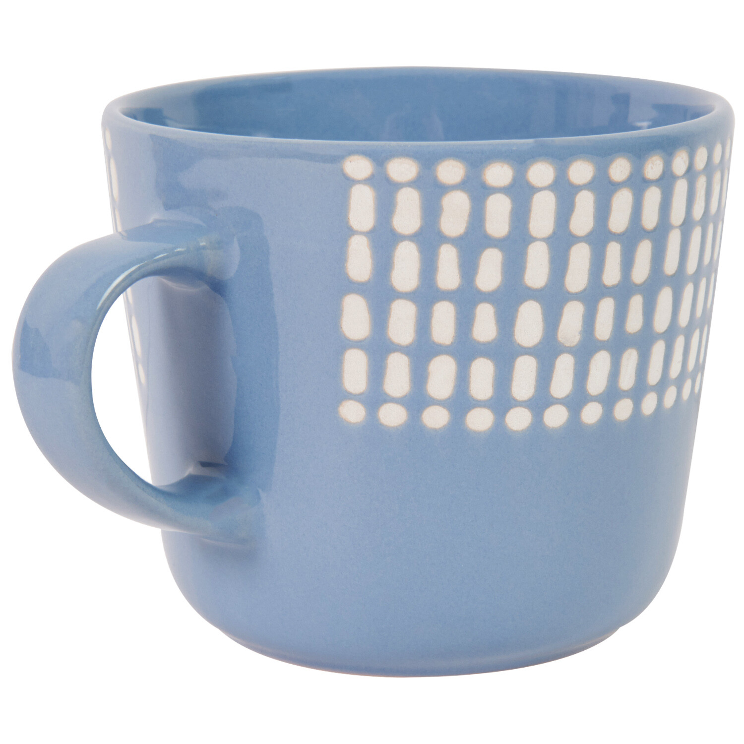 Make a stylish yet practical addition to your stoneware collection with the Half Dots Blue Wax Resistant Mug. Flaunting a beautiful blue hue, this mug is adorned with pretty little dots on its top half to give it a trendy and modern look. It's wax-resistant and perfect for making your tea or coffee break more relaxing.