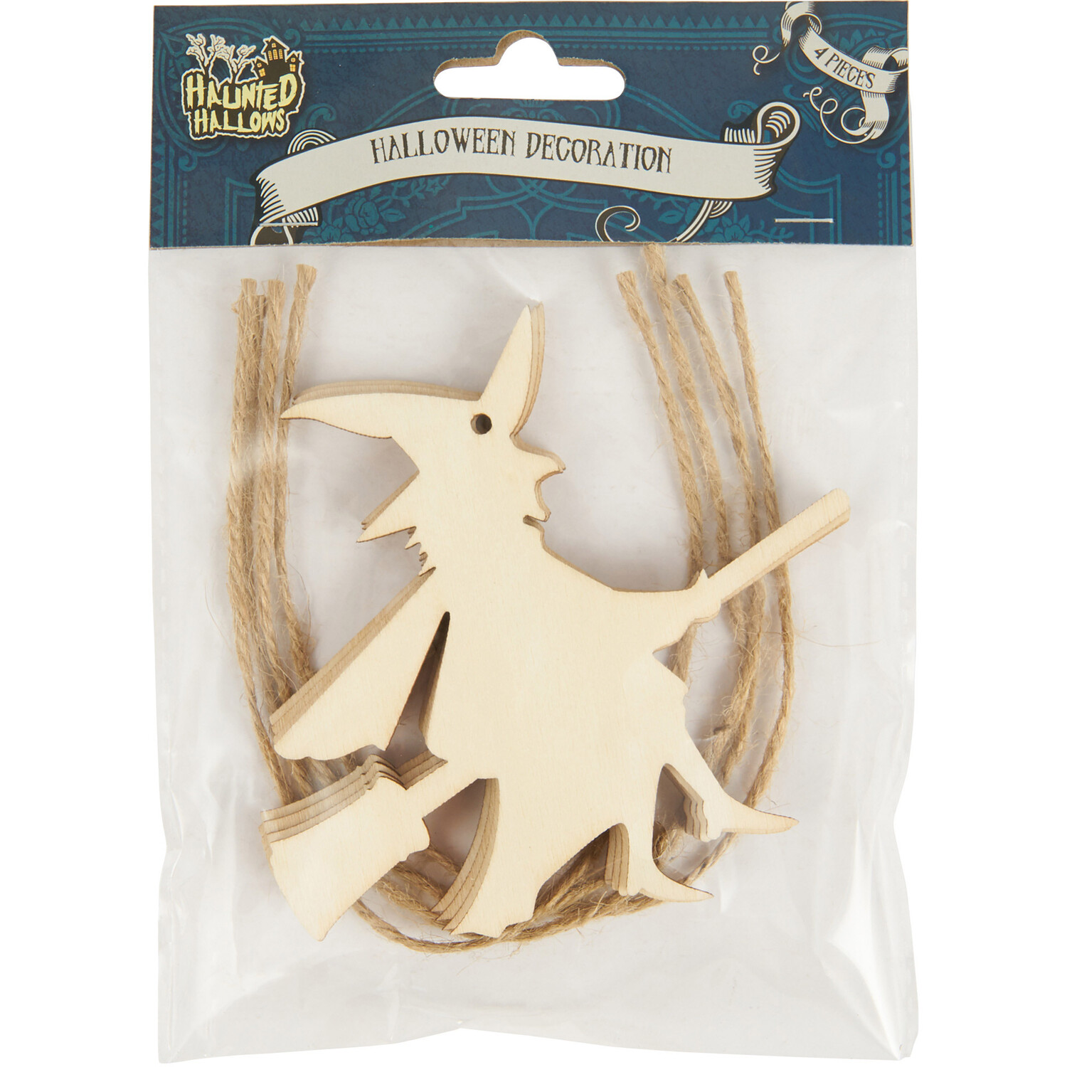 Add a spooky feel to your space with the Haunted Hallows Halloween Decoration. This decor pack includes a lovely wooden-shaped design perfect to take you into the Halloween world. Easy to use, it comes with an included string for simple hanging. These ornaments are available in four assorted designs - perfect for creating a stand-out theme for your party, gathering and more.