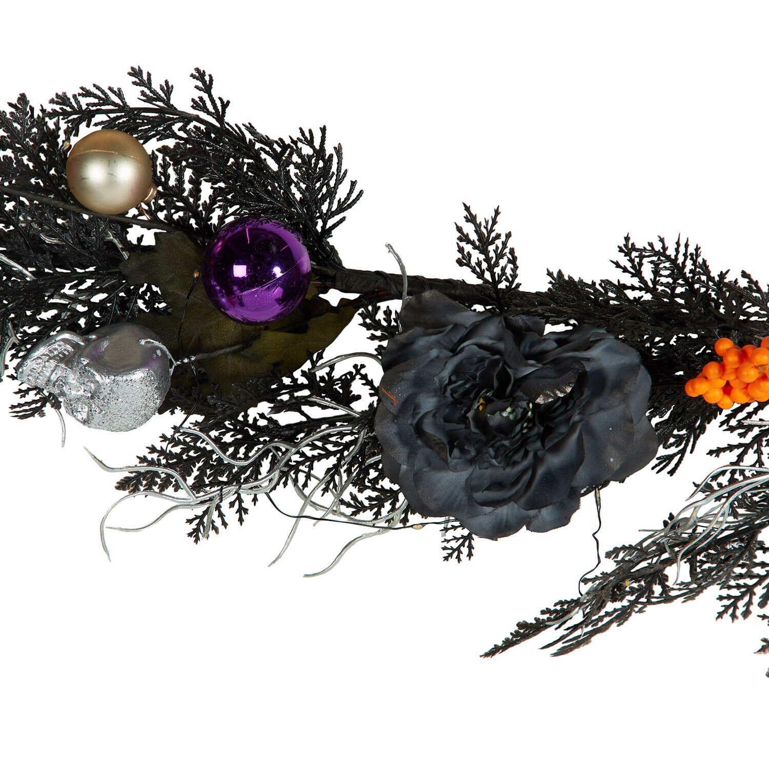 Elevate your festive decor with the Halloween LED garland. This eerie yet enchanting garland features dark foliage, miniature pumpkins, and LED lights that create a hauntingly beautiful glow. Perfect for decorating railings, mantels, and doorways, it adds a touch of Halloween magic to any space.