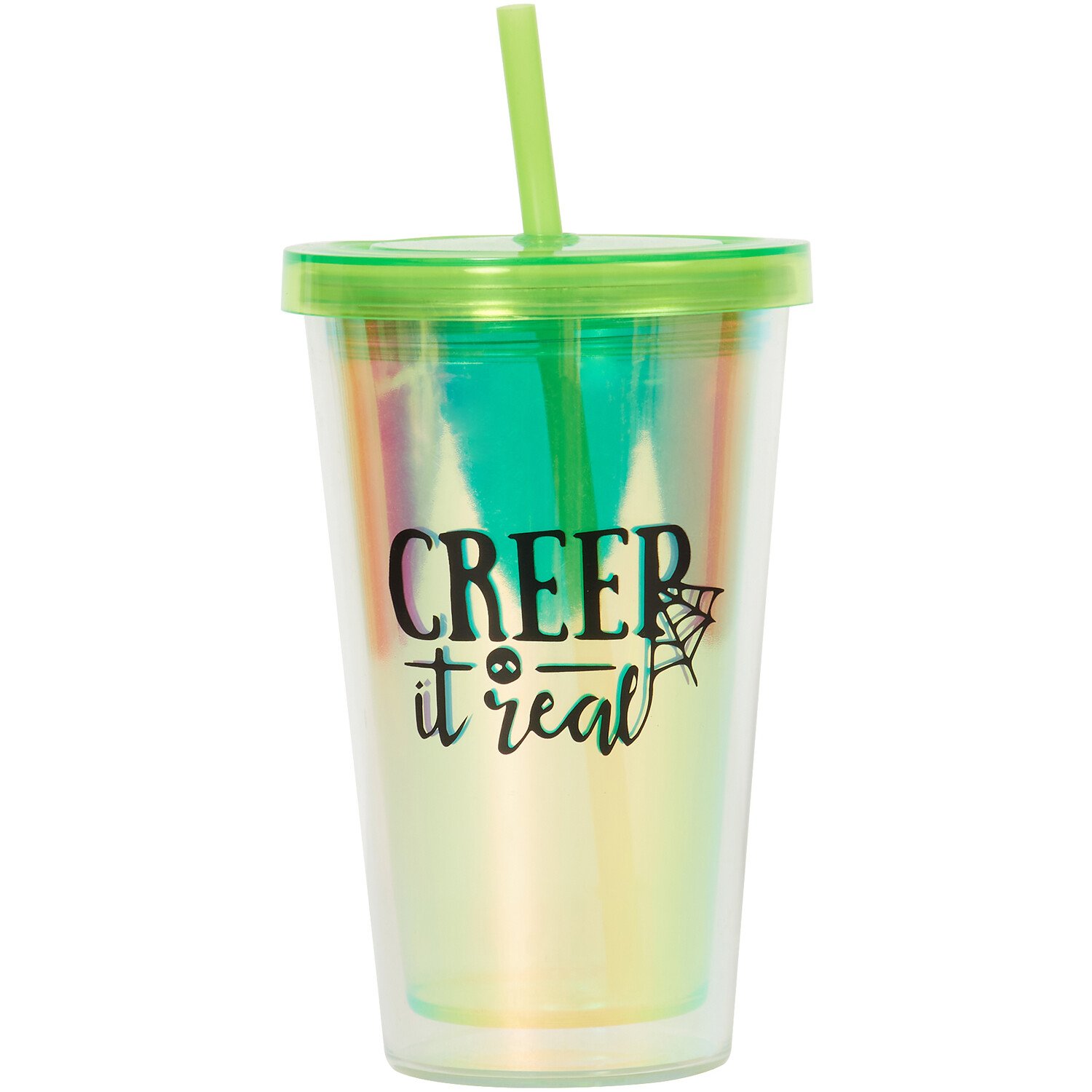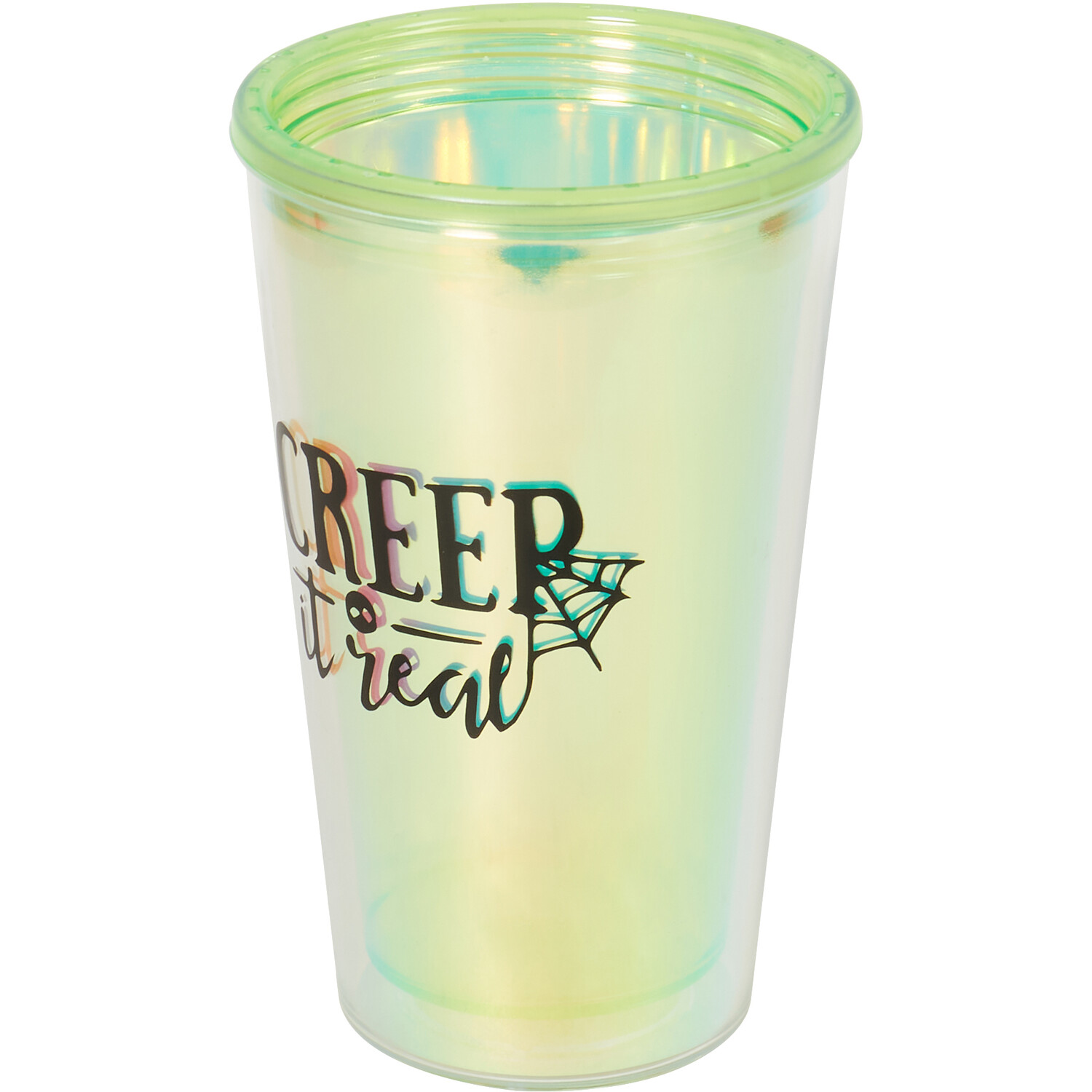 Perfect for your Halloween parties, this Halloween Slogan Drinks Cup features a fun, spooky pun such as Witch Please, Get Spooky, or Creep it Real. Made from plastic, the cup is lightweight but durable, making it perfect for kids and your party of tipsy ghosts and ghouls joining you on All Hallows Eve.