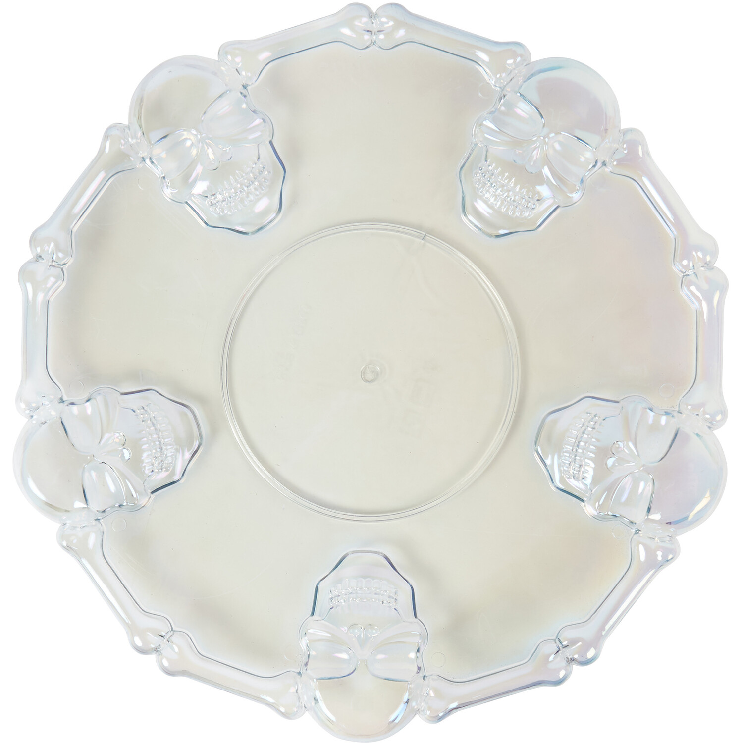 Serve your snacks and treats in this Halloween Spooky Skull Platter. Adorned with five creepy, smiling skulls and connecting bones, this platter is ideal for placing on the dining table for guests to help themselves. Perfect for your spooky parties, it is great for presenting your Halloween goodies with a macabre flair. This platter is suitable for serving appetizers, desserts and more.