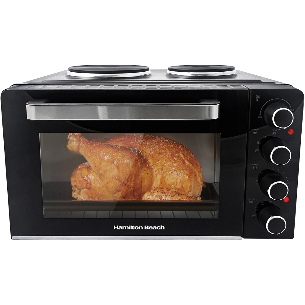 Get the perfect kitchen companion for all your cooking needs with the Hamilton Beach HB28HDB 28L Mini Electric Oven with Double Hotplate. This impressive mini oven may be compact, but it offers enough space to cook larger meals and fits seamlessly in smaller kitchens. With a powerful 3100W output, this mini oven ensures fast and efficient cooking, while its 1000W and 600W hotplates provide flexibility in your cooking options. You can even use the oven and hotplates simultaneously, allowing you to prepare multiple dishes at once and save time in the kitchen. With its 28L capacity, two sealed plate cooking zones in different sizes, and easy-grip controls, this mini oven is a must-have for any kitchen. Plus, it comes complete with essential accessories, including a food tray, wire rack, and tray handle, so you can get started cooking right away. With an energy-saving design and space-saving features, this mini oven is perfect for any home cook looking to save time and space in the kitchen.