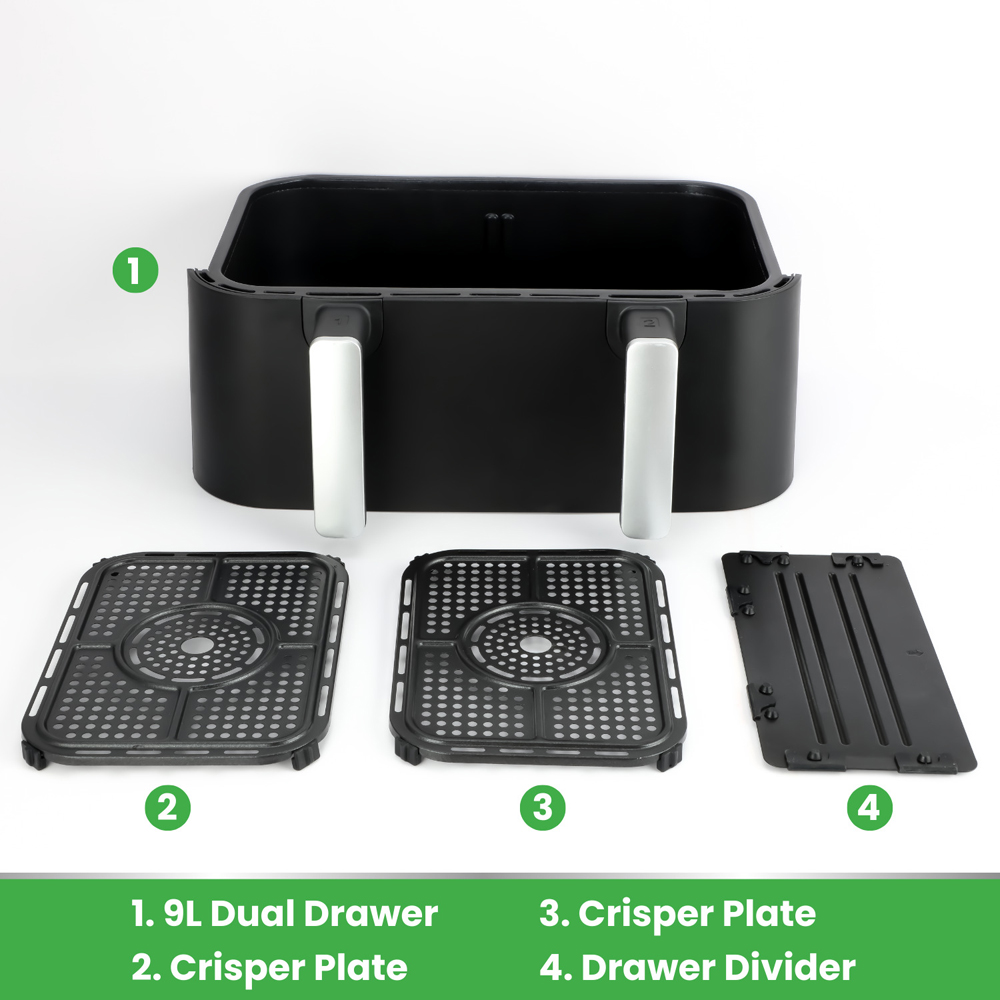 Prepare your favourite fried meals with the Hamilton Beach Visioncook Dual Air Fryer. It needs just a teaspoon of oil for healthy cooking so there's no need to feel guilty. This 9L fryer can be divided into two 4.5L zones for preparing convenient family meals and you can sync both zones to automatically finish cooking at the same time. It also features Vortex technology due to which you can cook food up to 25% faster using as little as a teaspoon of oil. You can choose from ten different pre-sets for preparing the food of your choice. This air fryer is both convenient and safe as it provides hassle-free air frying at a faster rate with its automatic settings alignment for streamlined cooking.