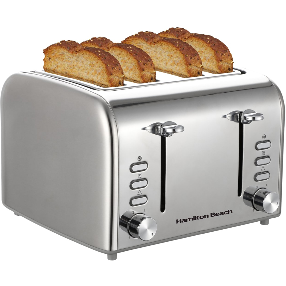 Kickstart your mornings with the Hamilton Beach HBKTBRUSH Brushed Rise Kettle 1.7L And Four Slice Toaster Bundle. This bundle includes a brushed kettle and a rise four-slice toaster. The kettle provides a rapid boil with its 3kW element and is finished in a premium brushed stainless-steel design. This coffee machine has a large 1.7L capacity and can make up to 12 cups of coffee in a single brew. The removable Nylon coffee filter is durable and washable, eliminating the need for paper filters. It also features a 360° rotational base, an ergonomic handle, perfect for right and left-handed use, and a 60-second anti-drip function, keeping your kitchen mess-free. There is a push button lid release for your convenience and a window to see how much water you're boiling. The toaster has a sleek stainless-steel design, which adds style and durability to your kitchen. You can customise your toast with variable browning for perfect crispiness. The removable crumb tray makes cleaning easy, while the 1600W power ensures quick and efficient toasting. You can enjoy total control with cancel, reheat, and defrost settings.