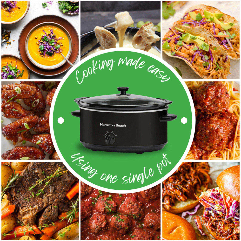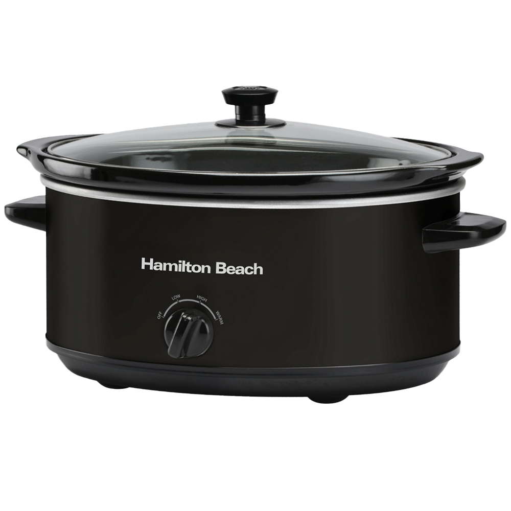 Cook delicious meals for your loved ones with this Black Slow Cooker by Hamilton Beach. This 240W power cooker has a capacity of 6.5 litres, serving up to six to eight people, making it a perfect choice for large families. It has a removable ceramic pot for easy cleaning. You can also clean it in a dishwasher. With the oven-safe ceramic pot, it finishes meals with perfect results. The tempered glass lid allows you to monitor food without heat loss, complimented by cool touch handles for easy transport. The cooker features manual temperature control with low, high, and warm settings. With all the qualities this energy-saving cooker offers, it becomes a time-saving solution for busy families who want homemade meals without the hassle.