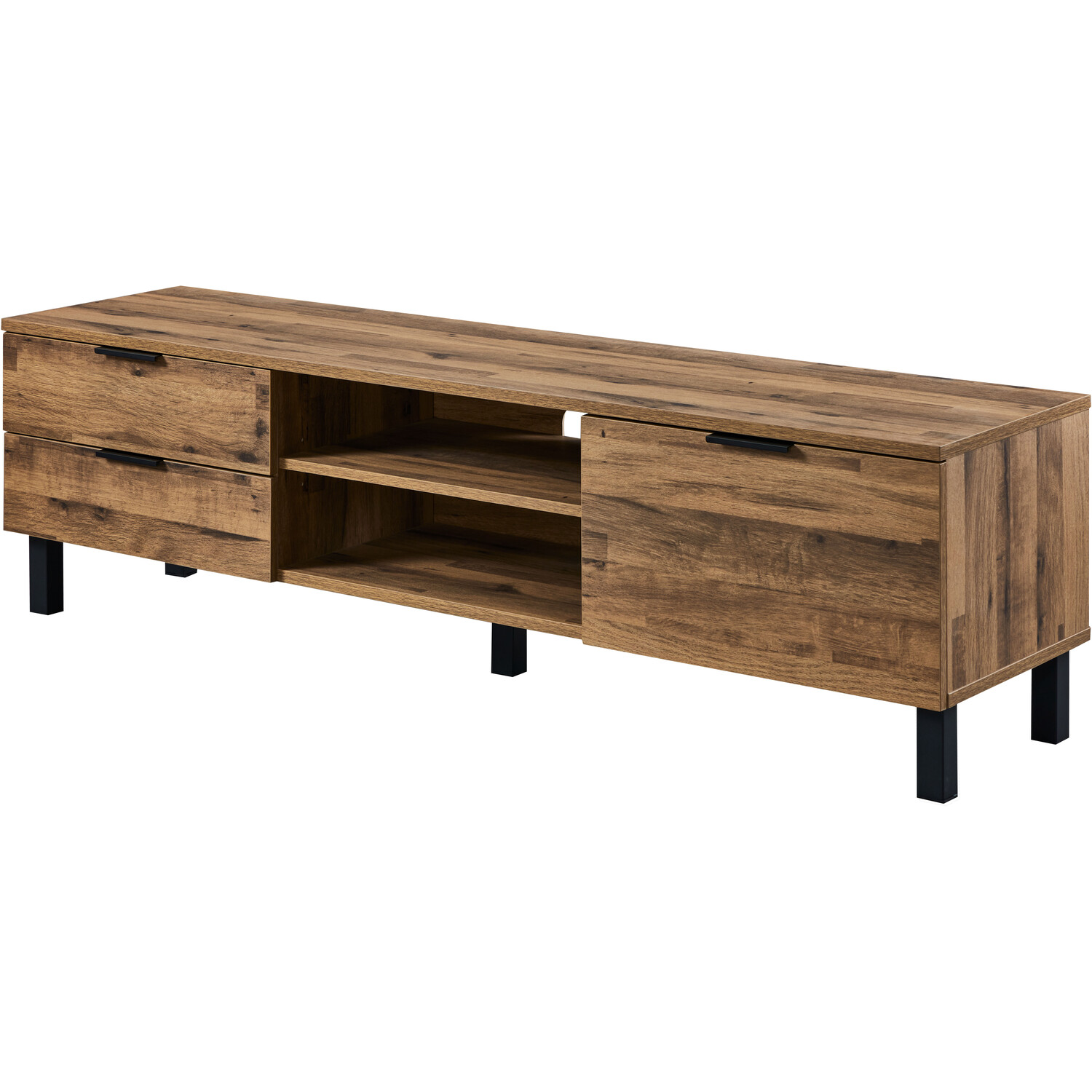 This Hampshire TV unit offers a perfect match for your living room with a modern oak finish and contrasting black metal legs and handles. It's easy to assemble and clean for your convenience; plus, it features plenty of storage space with the in-built drawers, shelves, and cupboard, ideal for all your electronics. Sleek and stylish with a modern flair that's easy to coordinate with various home decor themes, this beautiful unit will be the perfect finishing touch to your living room.