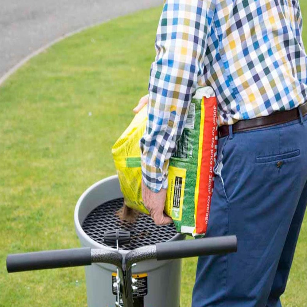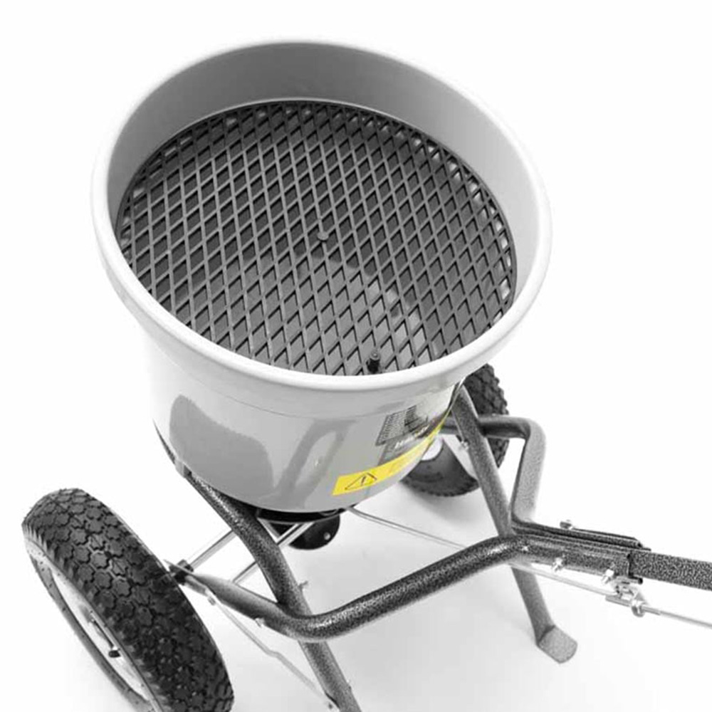 Whether you are looking to apply seed, pesticide or herbicide during the growing season or processed salts and ice-melt through the winter period, the versatile Handy THS50 50lb Broadcast Spreader is up to the job. It’s a fast worker over larger areas, with its roomy 22.7kg (50lbs) hopper keeping refill-breaks to a minimum, and its maximum working width of 3.65m makes it possible to cover lots of ground with every pass. The spread-width can be reduced by simply going slower. The Broadcast Spreader sits on large, wide-profile pneumatic tyres that provide high-grip traction for the spreading system and also ensure a smooth run across rough ground. A hopper-screen prevents performance-inhibiting clogging, while an ergonomic T-bar handlebar with soft grips confers excellent user comfort. Also featured are adjustable feed-control for enhanced flexibility, a hopper cover for successful operation in rainy conditions and a metal frame that works with a corrosion-resistant poly hopper to maximise durability.