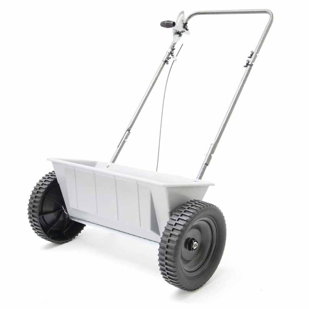 Maintain the greenery in your beautiful garden with a Handy Drop Spreader 27kg. This handy drop spreader is lightweight and has a generous 27kg capacity with a sizeable 56cm spread width, making it an effortless way to apply the chosen spread over a larger area. Its lightweight design and large, free-rolling wheels make it easy to propel, even on rough ground, and its convenient handlebar-mounted spreader-gate control spares your back by eliminating the need for repeatedly bending down. Rust and weatherproof poly hopper, adjustable feed control for flexibility of use and fingertip control for comfortable use are the other features of this spreader. The 27kg (60-litre) hopper is made from heavy-duty polypropylene that won’t corrode and easily resist any accidental impact. A direct drive optimises torque transfer from the wheels to the spreading mechanism, while an adjustable feed-control provides enhanced versatility.