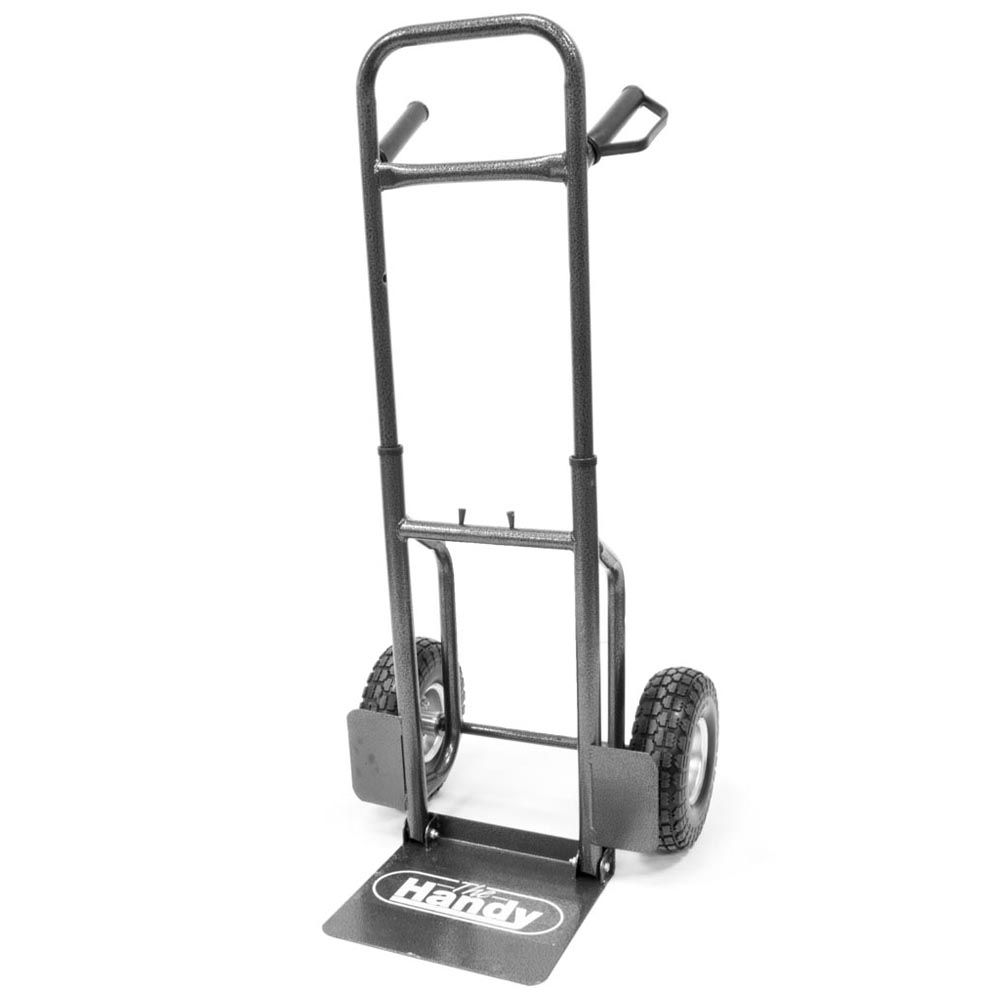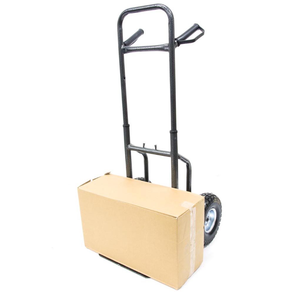 With a fold-up toe plate and retractable handlebars, the Handy Sack Truck is easy to store and will prove comfortable to use for any operator! It weighs just 10kg unloaded and has a huge 200kg capacity. The sack truck combines collapsible handlebars with a folding baseplate to ensure you’ll have no problems finding a spot for it in the shed, garage or car boot. It boasts handlebar height adjustment through three positions, so you’ll find it easy to use whatever your stature; and it’s fitted with large 25cm-diameter puncture-proof tyres for low-effort manoeuvrability across a range of surface types. Based around a robust 2.5cm tubular-steel frame, the sack truck offers rugged durability. It also features moulded-plastic handle coverings for a comfortable and positive grip. It weighs only 10kg when empty. Dimensions: 51.5 × 48.5 × 111cm. Warranty 12 months.