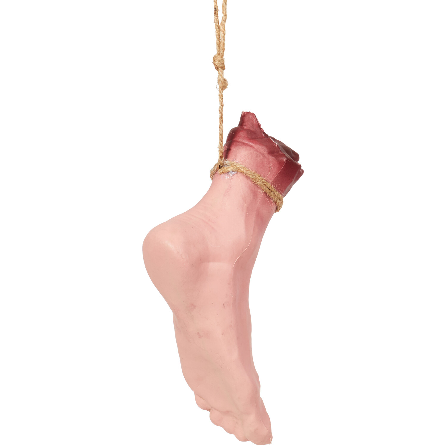 Set the perfect frightening tone this Halloween with this Hanging Bloody Foot. Easy to hang with the rope tied around the ankle, this decoration will frighten your guests at a Halloween party or your unsuspecting trick-or-treaters. The bloodied stump effect makes the design all the more eerie, making it look like it's been freshly severed from someone who tried to run...