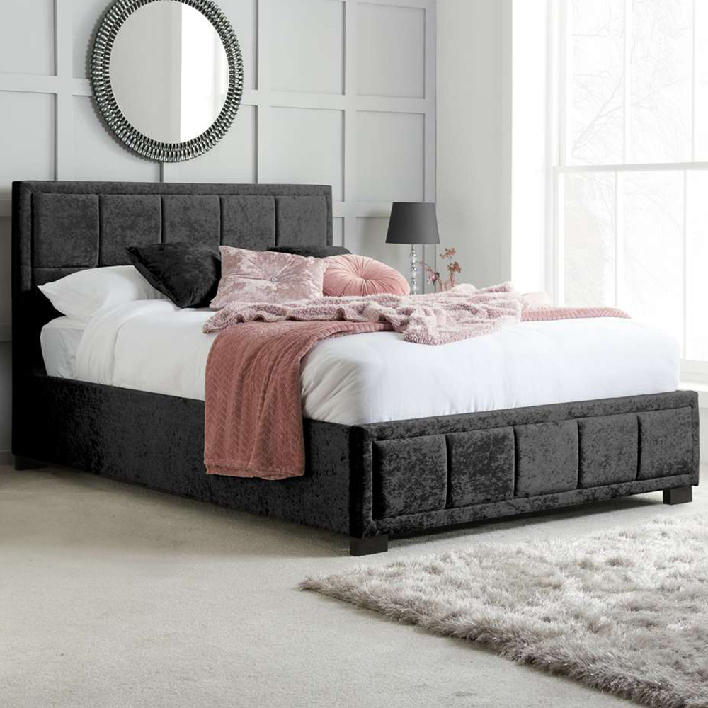 Combining a stylish design and a fabric finish, this Hannover Bed Frame will be a fabulous addition to any bedroom. The fabric bed features a cushioned headboard and has a sprung slatted base for natural bounce, the frame adjusts to where pressure is exerted most, providing greater comfort. Finished in black velour fabric, this bed will look stunning in a traditional or contemporary style of bedroom decor. Size: Small Double. Please note: The maximum weight load for this bed frame is 200kg. The bed is only suitable for a UK standard-size mattress and the recommended maximum mattress height is 250mm.
