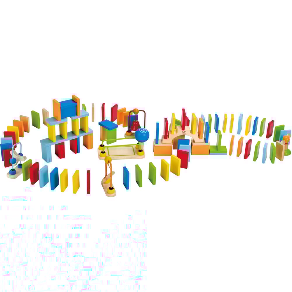 Build a colourful trail of 100 wooden dominoes. Add a bridge, bell, rails, and assorted tricks. Tap one rectangle and watch them all come tumbling down. Ideal for STEAM value, three-dimensional thinking, spatial recognition and colour recognition. Develop several fundamental learning skills.