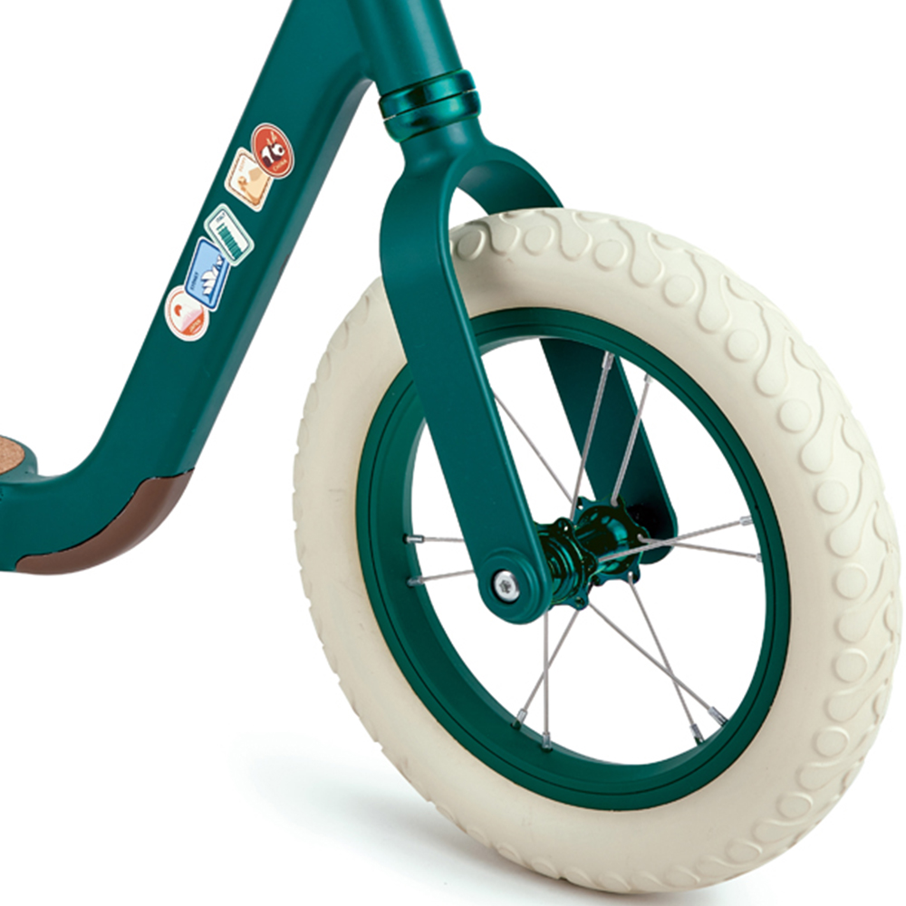 Introduce the perfect balance bike for your child with the Hape Green Balance Bike. Crafted from a lightweight aluminium and magnesium alloy, this balance bike is not only sturdy but also easy to carry with its ergonomically designed handle under the saddle. The saddle is thoughtfully designed with an open centre for maximum comfort and is adjustable in height (36 to 40cm) to accommodate children at various stages. Additionally, the handles, saddle, and footrest area are made from renewable and eco-friendly cork, providing a warm and soft touch. The low footrest area is ideal for smaller children to rest their feet, and the puncture-proof PU tyres require no inflation and offer solid, durable, and flexible support. With its sleek design and practical features, this balance bike is the perfect companion for your child's outdoor adventures, allowing for a comfortable, relaxed grip with its slightly bent handlebars. Additionally, the added convenience of the handle on the underside of the saddle makes it easy for parents to carry or assist their little ones while they develop their riding skills. Take this beautiful, lightweight balance bike with you anywhere and discover the best spots for your child to practice and enjoy their first riding experiences.