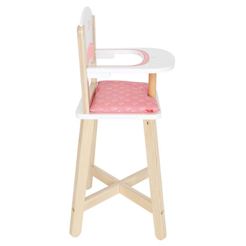 Encourage imaginative play with the Hape Highchair. The mini highchair is designed to encourage dolls to sit up straight and eat their food. It allows children to role-play and feed their baby doll in a special highchair. With its classic styling and solid wood construction, the highchair ensures durability and safety. It's a perfect addition to promote creative play and storytelling.