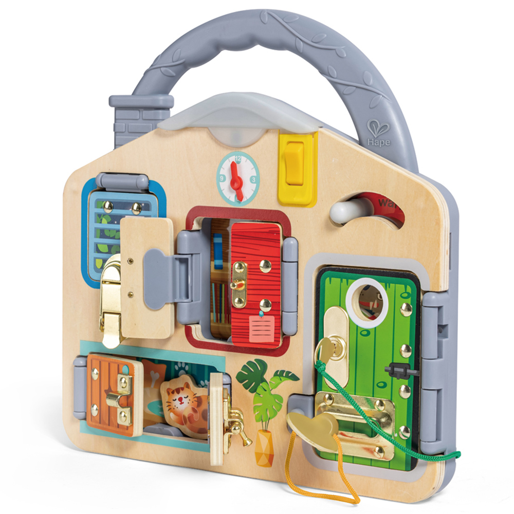 Embark on an exciting unlocking adventure with this captivating Hape Kids Lock and Learn Play Board Set. This engaging play set features a variety of locks, doors, and secret passages, perfect for imaginative exploration and problem-solving fun. With doors of different colours and sizes, it encourages kids to identify and name each one. It is designed to develop fine motor skills as children manipulate the locks, which require precise finger movements. Some locks may pose a challenge, teaching kids the value or persistence and resilience.