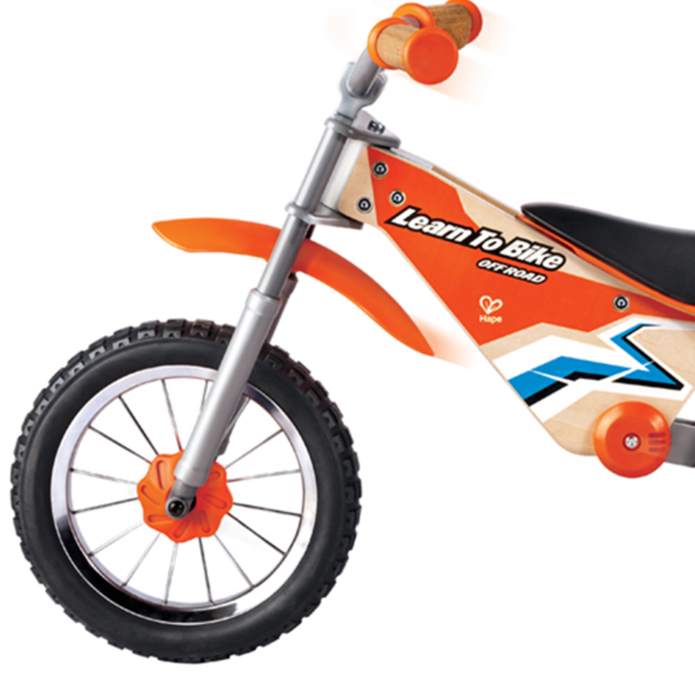 Let your children gear up for adventure with the Hape Off Road Balance Bike. This clever bike is ideal for getting the little daredevil on the tracks as well as promoting a healthy and active lifestyle. The bike is made from premium wood and steel, ensuring longevity. With the added shock absorber beneath the seat, your child's spine is protected from every bump and jolt. The bike features 12 inch rubber tyres that are puncture-proof, eliminating the need for puncture kits. The handlebars are covered with eco-friendly flexible cork, making them anti-slip, stress-relieving, and comfortable to grip. The saddle is flexible, comfortable, and ergonomically designed for children. Before hitting the road, remember to wear protective equipment.