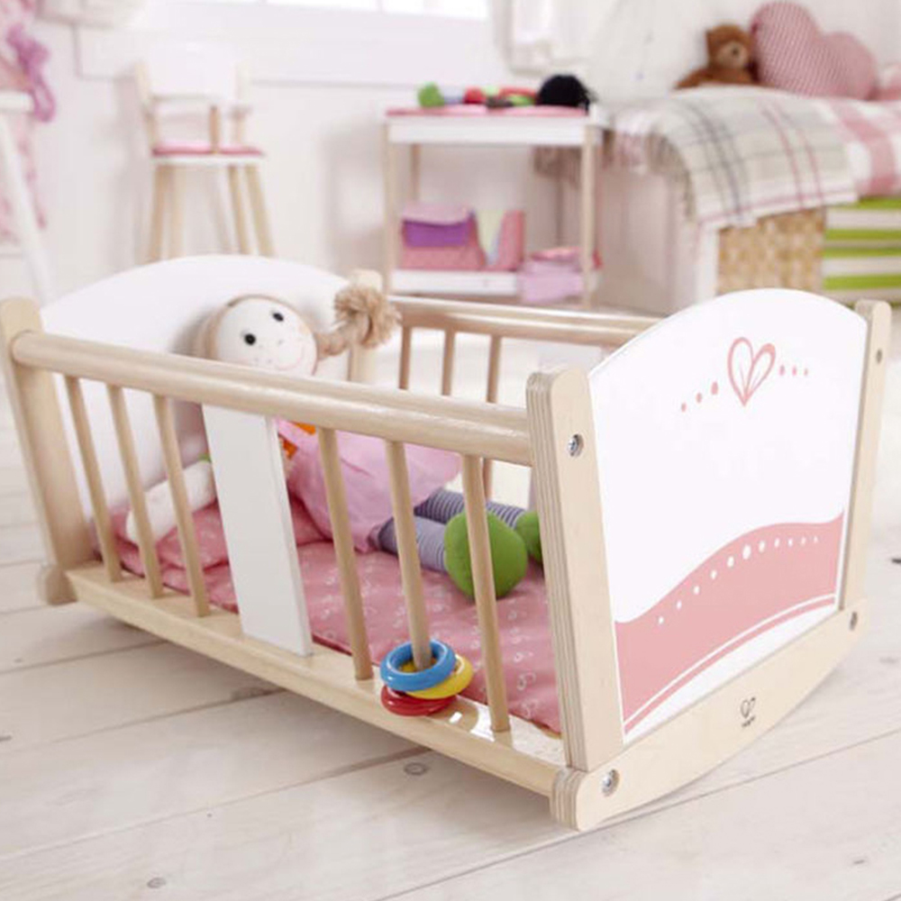 Delight your child with the Hape Rock a Bye Cradle, a sturdy and charming piece designed for children aged 36 months and up. Encourage imaginative play as your little one rocks their baby doll to sleep in this delightful cradle. Crafted with non-toxic finishes and child-safe materials, it's safe and enjoyable for your child.