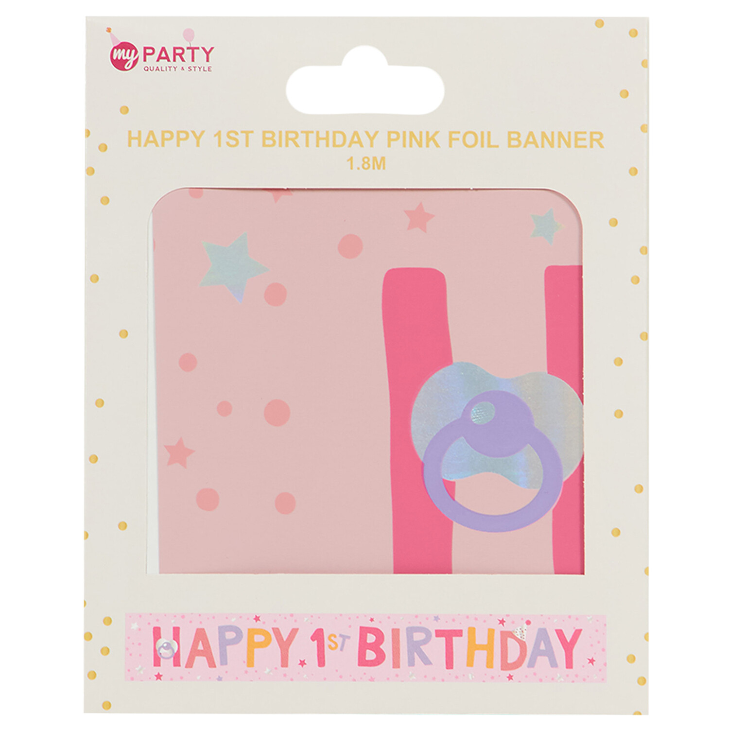 Make your toddler's birthday extra special with this Happy 1st Birthday Pink Foil Banner. Featuring fun detailing and a striking pink colourway, this banner makes a fantastic option for first birthdays. Easy to hang, it can be affixed across party tables, doorways, walls and more.