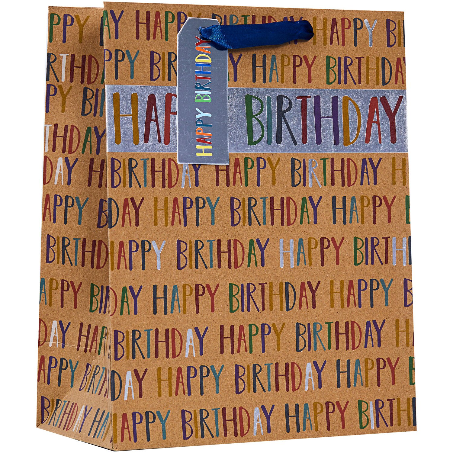 Perfect for showing you care, this Happy Birthday Kraft Bag is a great way to give gifts in style. Excellent for birthdays, this colourful bag features a fun multicoloured "Happy Birthday" design, a matching gift tag and handles. Versatile and fun, this gift bag is a must-have addition to your gift-wrapping accessories.