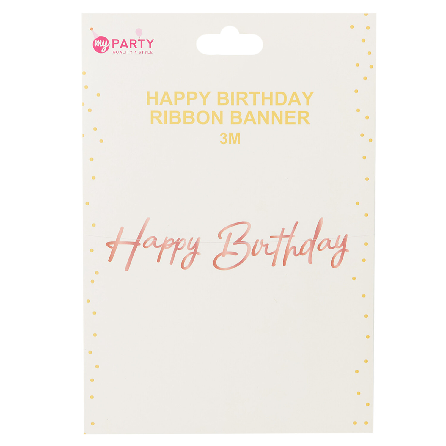 Enhance your birthday decor with the Happy Birthday Ribbon Banner. Available in an assortment of styles, this banner features 'Happy Birthday' lettering in a stylish font and colour so you can easily drape it on your wall and give your celebrations a perfect finishing touch.