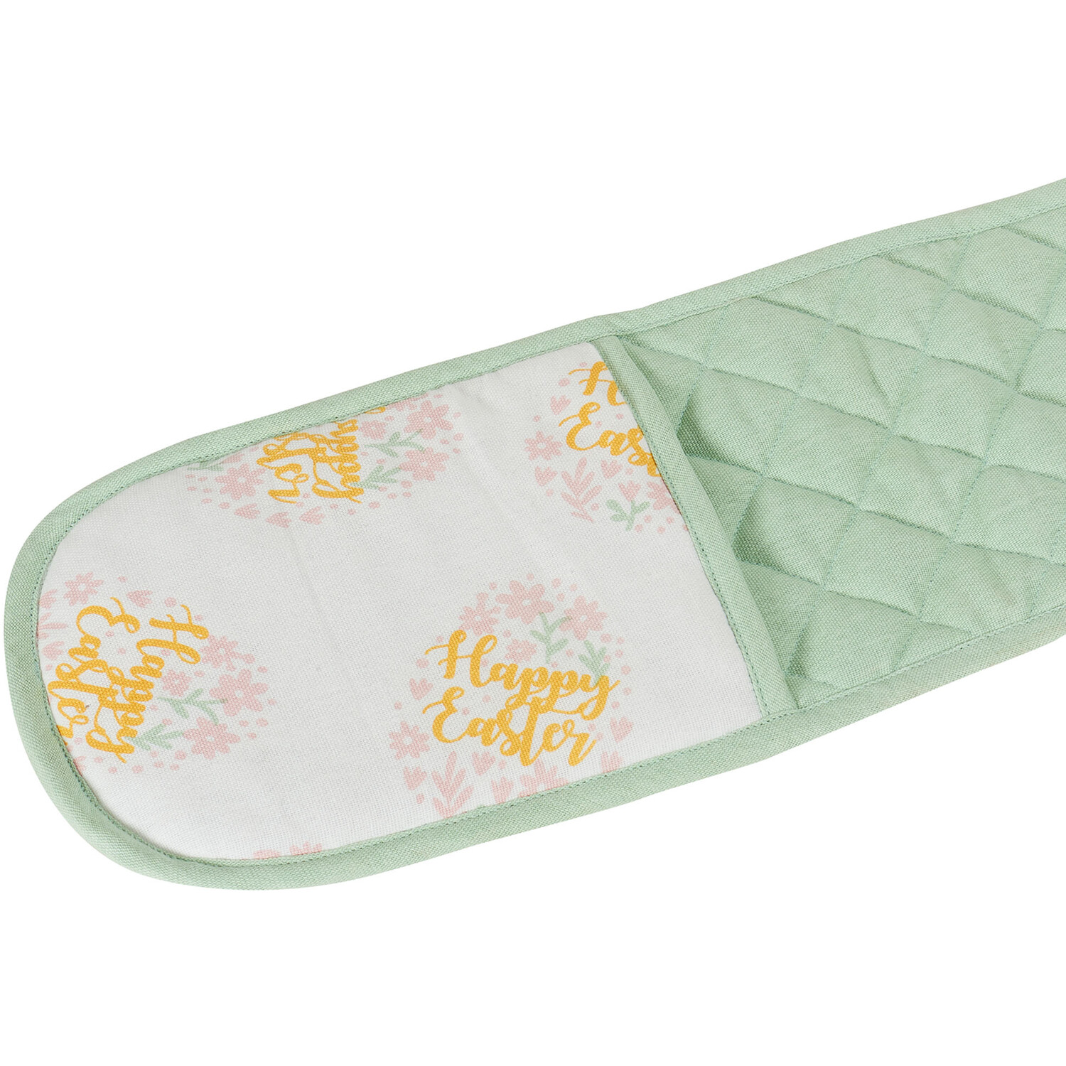 The Happy Easter Double Oven Gloves are the perfect accessory for your kitchen when cooking your Easter lunch. The oven gloves have a charming green tone reminiscent of spring and are finished with a 'Happy Easter' floral sentiment on the front panels. They're designed to help you take hot dishes from the oven while protecting your hands and will look lovely hanging in your kitchen over Easter.
