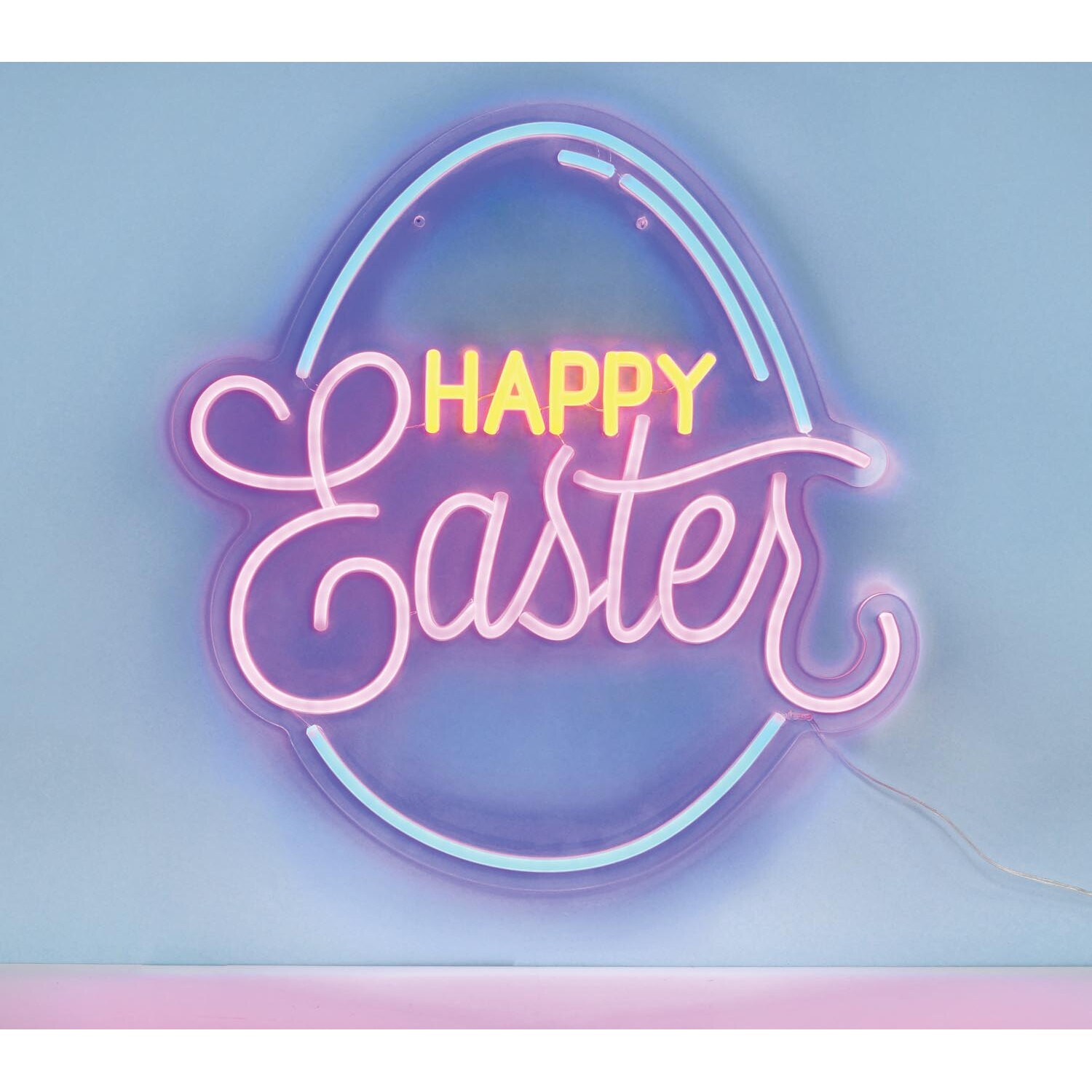 Fun, colourful and incredibly on-trend, this Happy Easter Egg Neon Sign is a must-have addition to your home. This trendy neon-inspired light is shaped into curling writing that reads "Happy Easter" in glowing multi-colours, guaranteed to brighten up your space in style this spring.