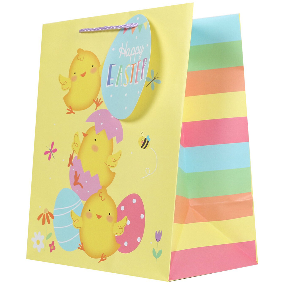 A perfectly adorable gift bag for the Easter season, the Cute Easter Chick Bag is ideal for gifting Easter Eggs or even as an alternative to baskets for Easter Egg hunts. This springtime design features cute chicks, beautifully decorated eggs, flowers, bees and butterflies, perfectly capturing the theme of Easter in one bag.