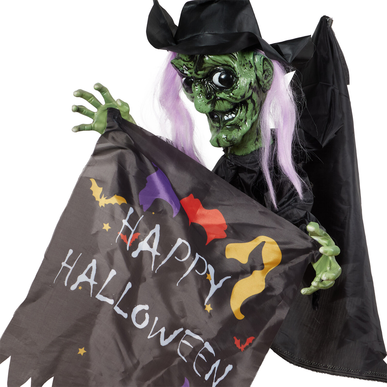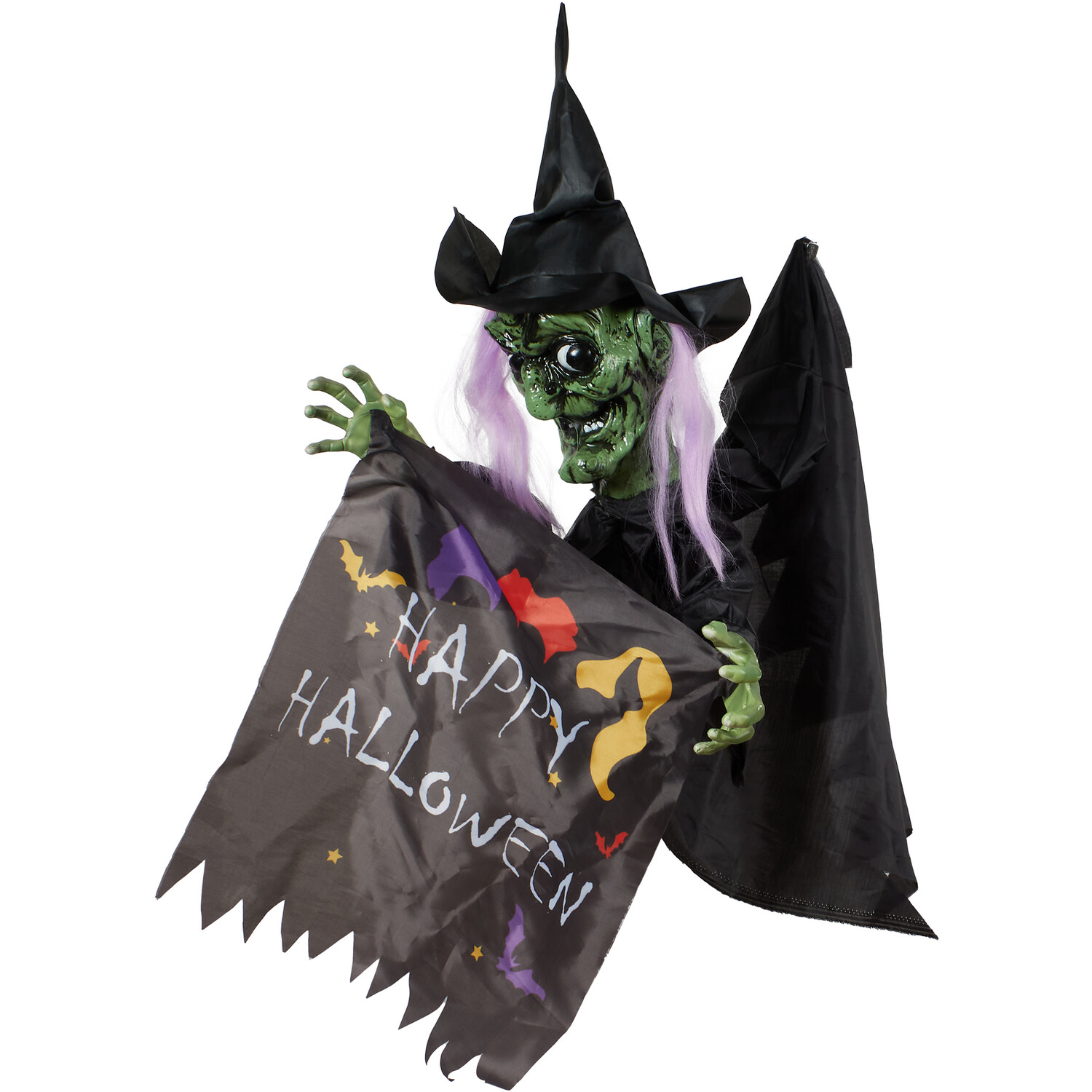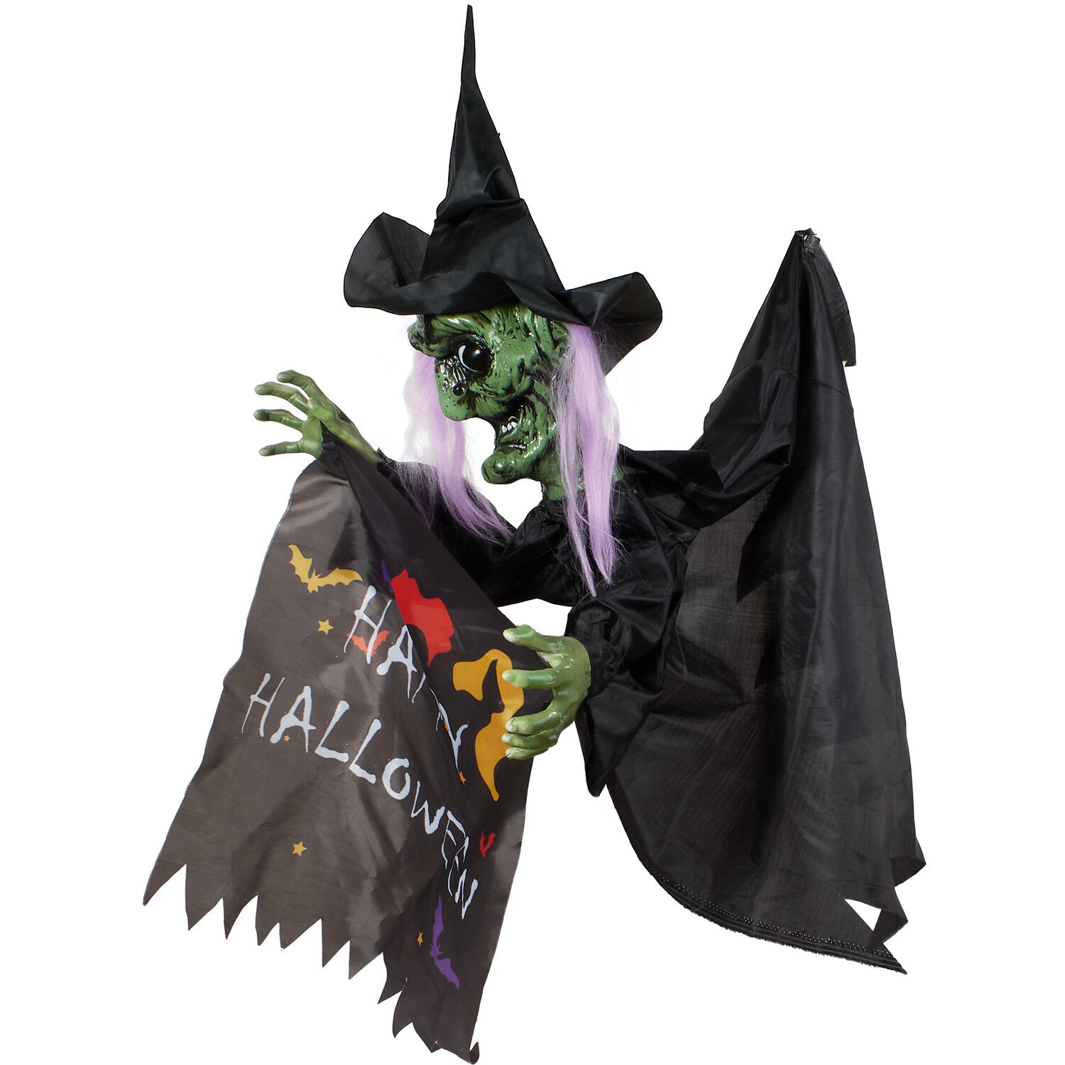 Add a spooky touch to your space with this Happy Halloween Hanging Witch. Ideal for setting the tone this Halloween, this decorative piece will surely make your party unforgettable. It showcases a creepy and unattractive witch design with a hanging sign to entice your guests and trick-or-treaters. Moreover, it’s quick and easy to hang anywhere around your home.