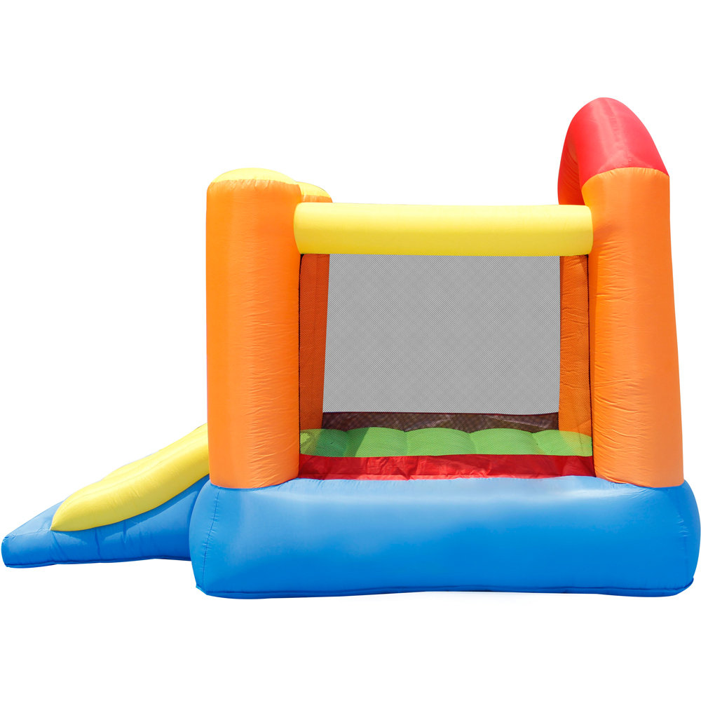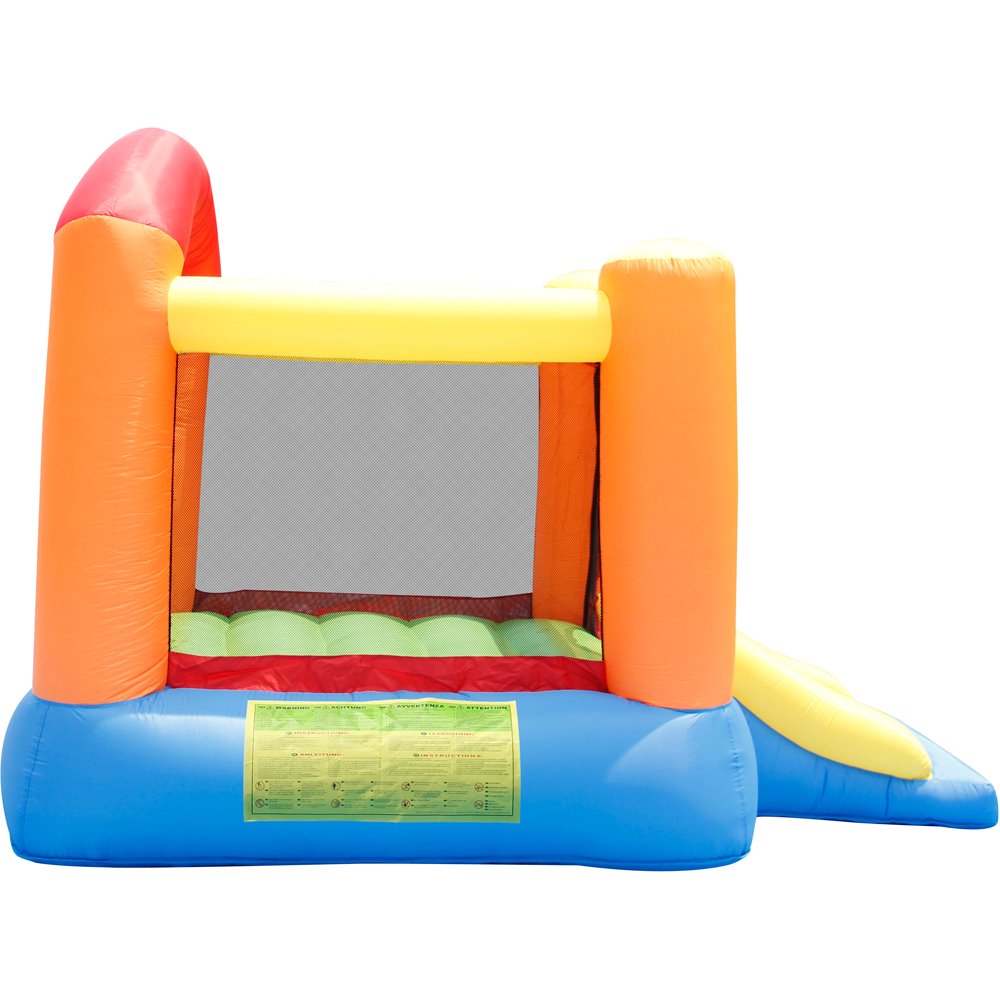 Get ready for a bouncing good time with the Happy Hop Slide Bouncer Playcentre. This vibrant and inviting inflatable bouncer is the ultimate attraction for kids' parties, picnics, and social gatherings. The eye-catching design ensures that it will be the centre of attention at any event. With a secure net enclosure, children can bounce safely while allowing adults to supervise with ease. The added bonus of a slide adds an extra element of excitement, allowing kids to climb up and slide down for endless fun. Cleaning up after the party is a breeze, as the bouncer can be easily deflated, folded, rolled, and packed away for future use. It comes complete with a heavy-duty air blower for continuous enjoyment, ground anchors for stability, a convenient carry bag for transport, and a repair kit for peace of mind. The bouncer is a must-have for any occasion, ensuring hours of laughter and entertainment for kids of all ages.